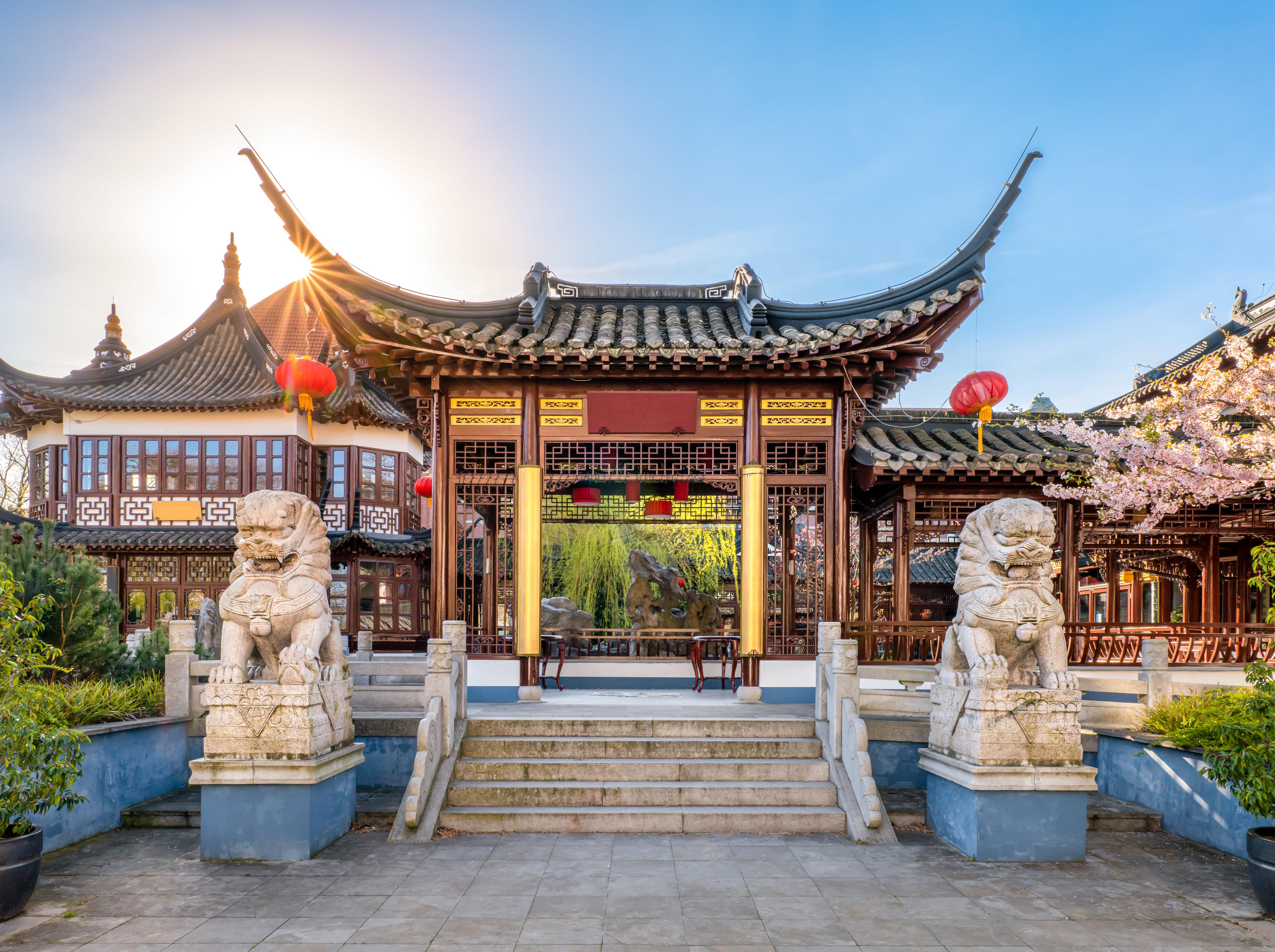 Wer über die Zickzackbrücke – sie soll böse Geister fernhalten – am kleinen Wasserfall vorbei zum Teehaus mit den Pagodendächern geht, wähnt sich nicht mitten in Hamburg, sondern in Südchina. Der Yu Garden an der Ecke Binderstraße/ Feldbrunnenstraße beim Völkerkundemuseum ist nach dem Vorbild des berühmtesten Teehauses Chinas gebaut worden, des Shanghaier Huxinting. Die Materialien kamen in 40 Containern direkt aus China: 140 000 halbrunde typische Dachziegel, 40 000 Dachsteine und 115 t Taihu-Kalkstein. Das besonders poröse Gestein dient in China traditionell zur Gartengestaltung. Die Betrachtung der Steine soll in eine meditative Stimmung versetzen, die auch dem Teegenuss nachgesagt wird. Diese uralte chinesische Tradition wird im Teehaus ganz ursprünglich gepflegt: Der erste „Aufguss zum Waschen des Tees“ wird nicht getrunken. Er dient nur dazu, den Tee zu wecken und die Kanne zu aromatisieren. Erst der erste richtige „Aufguss des guten Geruchs“ und der zweite „Aufguss des guten Geschmacks“ werden dann in Ruhe genossen. Bei schönem Wetter kannst du den Tee auf der Terrasse mit Blick auf die chinesisch gestalteten Gebäude trinken.