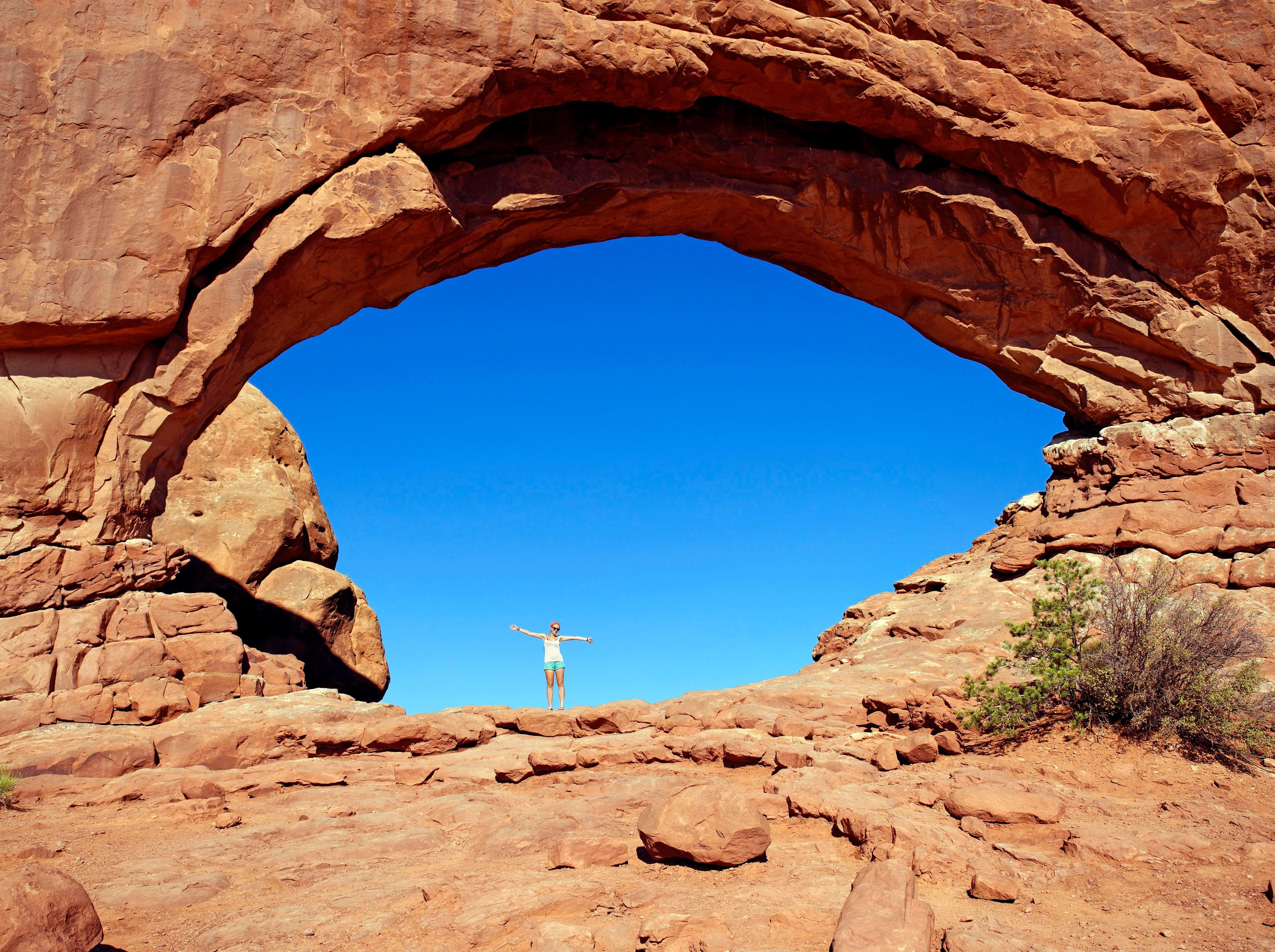 In unmittelbarer Nachbarschaft, quasi gleich gegenüber, befindet sich ein Nationalpark mit gänzlich unterschiedlichen Felsformationen: Hier konzentriert sich die weltweit größte Anzahl natürlicher Steinbögen auf engstem Raum. Viele davon sind auf kurzen Spaziergängen von der Straße aus zu besichtigen. Sehr praktisch, wenn man nur wenig Zeit hat oder nicht gut zu Fuß ist.