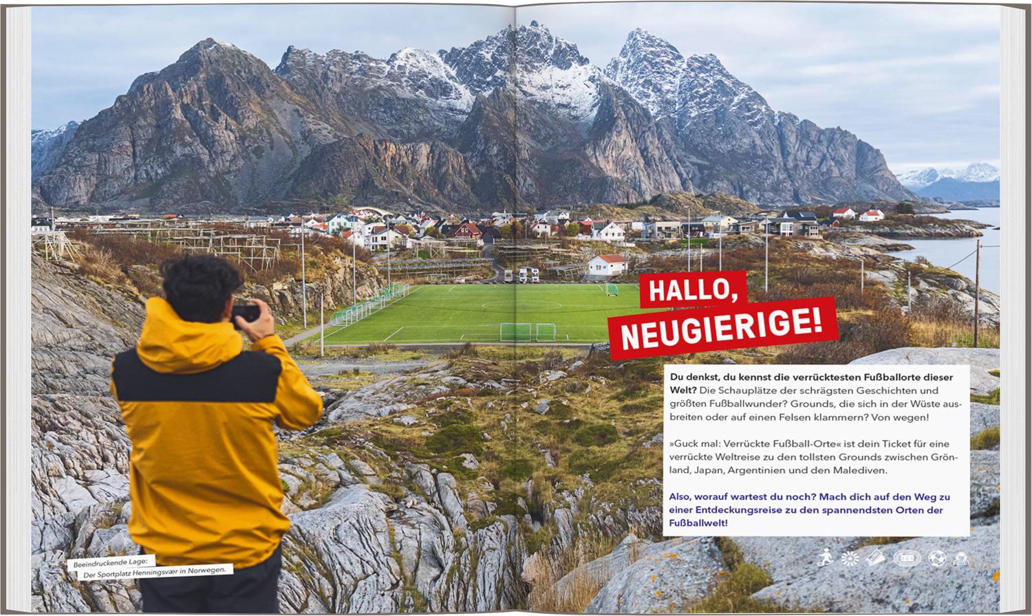 BEREIT FÜR EINE WELTREISE der besonderen Art? Von der Hightech-Architektur des Sapporo Dome bis zum versteckten Spielfeld im Hadschar-Gebirge nimmt das Buch mit auf eine Reise zu den außergewöhnlichsten Fußballorten rund um den Globus. Legendäre Momente wie Griechenlands EM-Triumph oder die Fast-Sensation der Färöer gegen Deutschland stehen neben vergessenen Fan-Hotspots und historischen Meilensteinen wie den Dick, Kerr Ladies. Ein Panorama aus Emotion, Abenteuer und Leidenschaft – erzählt durch Orte, die Fußballgeschichte atmen. Ein Muss für Fußballfans, Globetrotter und alle, die das Spiel lieben – egal, wo es gespielt wird.