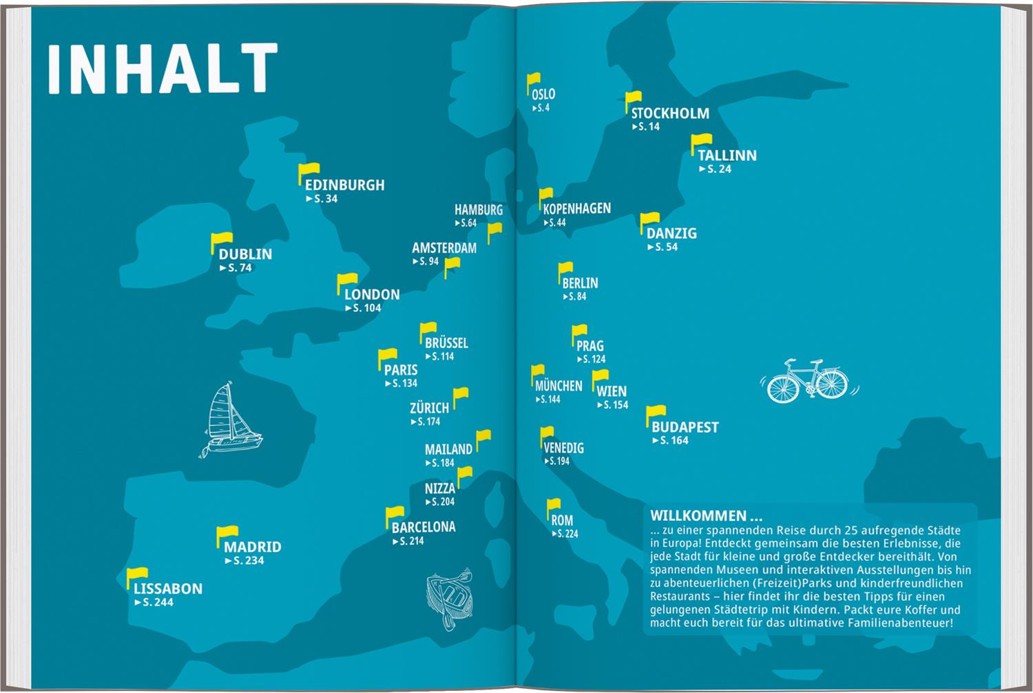 Mit Kindern in Europa unterwegs und alle haben eine gute Zeit! Entdecke die perfekte Mischung aus Kultur und Kinderspaß in 25 Top-Städten. Ob Barcelona, Paris, Kopenhagen oder München – dieser praxiserprobte Reiseführer präsentiert über 600 spannende Erlebnisse, die Groß und Klein gleichermaßen begeistern. Alle Städte werden mit den 10 besten Sehenswürdigkeiten, 15 tollen Familien-Aktivitäten und praktischen Gut zu wissen-Tipps vorgestellt. Von familienfreundlichen Museen über aufregende Draußen-Abenteuer bis hin zu Restaurants, wo es auch den Kleinen schmeckt – hier finden Eltern alles für einen stressfreien Städtetrip ohne Langeweile. Der ideale Begleiter für alle Familien, die Europa entdecken möchten.