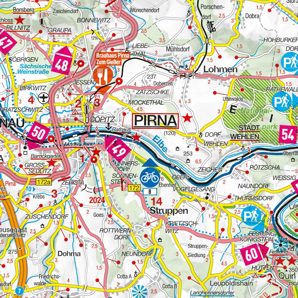Die Marco Polo Freizeitkarte Dresden, Oberlausitz, Sächsische Schweiz im Maßstab 1:100.000 ist ideal für deine detaillierte Ausflugs- und Urlaubsplanung. Die Karte enthält nicht nur wichtige Informationen, Wegpunkte und Einrichtungen, sondern auch 66 ausgewählte Tipps und Ziele in der Region: Dresden, Oberlausitz, Sächsische Schweiz. Ob Fahrradtouren, Wanderparkplätze oder gemütliche Ausflugslokale – mit dieser wetter- und reißfesten Karte bist du bestens vorbereitet für abwechslungsreiche Entdeckungen in der Region.