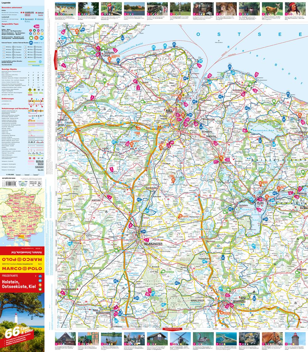 Die Marco Polo Freizeitkarte Holstein, Ostseeküste, Kiel im Maßstab 1:100.000 ist ideal für deine detaillierte Ausflugs- und Urlaubsplanung. Die Karte enthält nicht nur wichtige Informationen, Wegpunkte und Einrichtungen, sondern auch 66 ausgewählte Tipps und Ziele in der Region: Holstein, Ostseeküste, Kiel. Ob Fahrradtouren, Wanderparkplätze oder gemütliche Ausflugslokale – mit dieser wetter- und reißfesten Karte bist du bestens vorbereitet für abwechslungsreiche Entdeckungen in der Region.