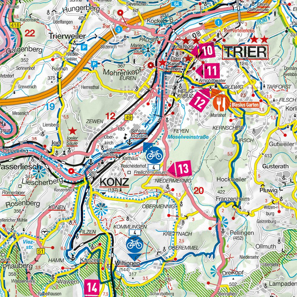 Die Marco Polo Freizeitkarte Saarland, Obermosel, Trier im Maßstab 1:115.000 ist ideal für deine detaillierte Ausflugs- und Urlaubsplanung. Die Karte enthält nicht nur wichtige Informationen, Wegpunkte und Einrichtungen, sondern auch 66 ausgewählte Tipps und Ziele in der Region: Saarland, Obermosel, Trier. Ob Fahrradtouren, Wanderparkplätze oder gemütliche Ausflugslokale – mit dieser wetter- und reißfesten Karte bist du bestens vorbereitet für abwechslungsreiche Entdeckungen in der Region.