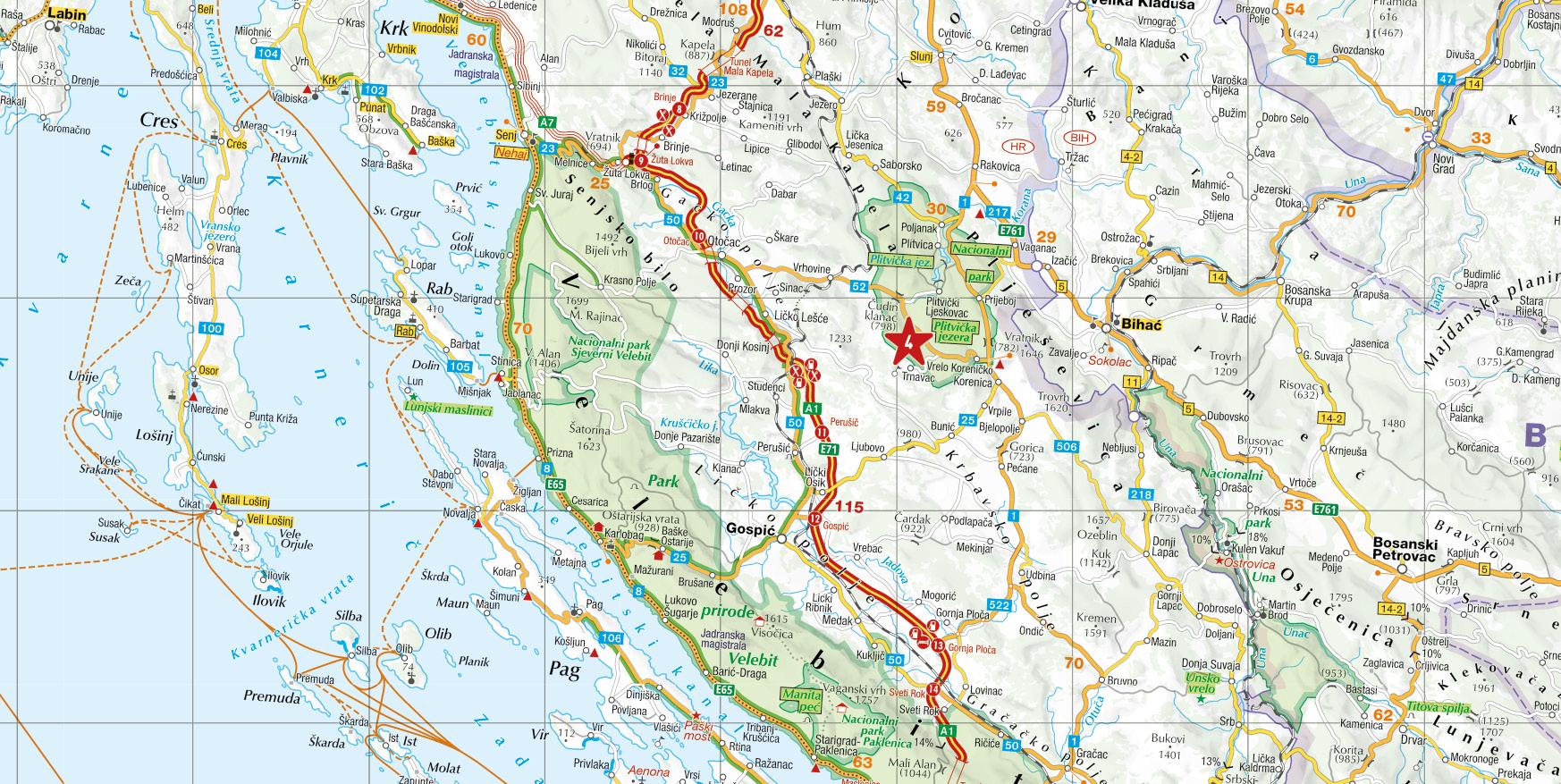 Slowenien, Kosovo, Montenegro - Straßenkarte und Autokarte mit sehenswerten Strecken, Highlights und digitaler Erweiterung