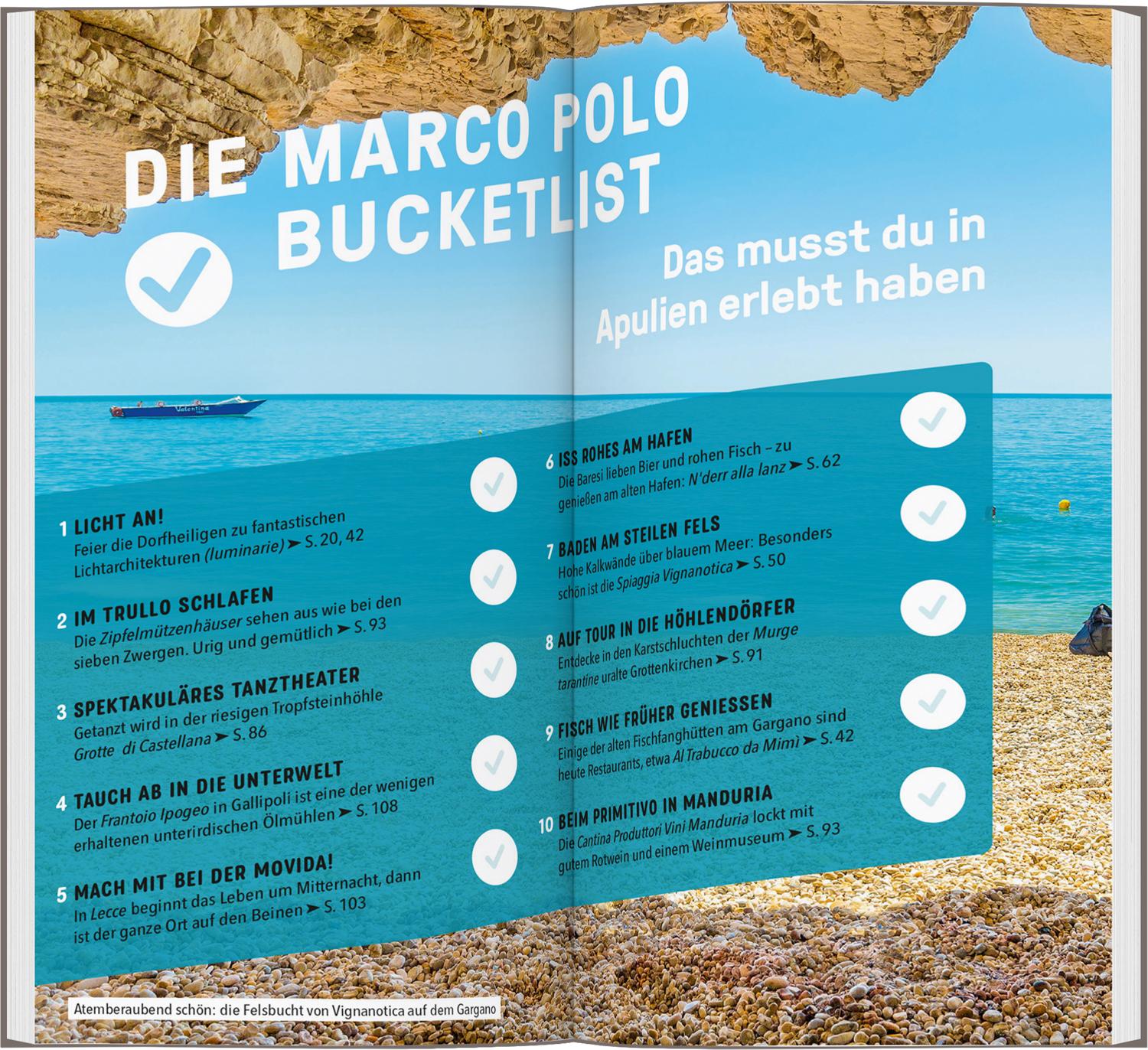 Die Königin des Sommers kennenlernen mit dem MARCO POLO Reiseführer Apulien Durchtanzte Sommernächte oder spannendes Sightseeing-Programm? In Apulien kannst du beides haben! Nicht umsonst wird Italiens Stiefelabsatz auch „Regina dell’Estate“, also Königin des Sommers genannt. Wo die Beachpartys schon am Nachmittag beginnen und eindrucksvolle Kalksteinwände über blauem Meer fantastische Fotospots bereithalten, verbringst du mit dem MARCO POLO Reiseführer Apulien genau den Urlaub, den du dir wünschst!