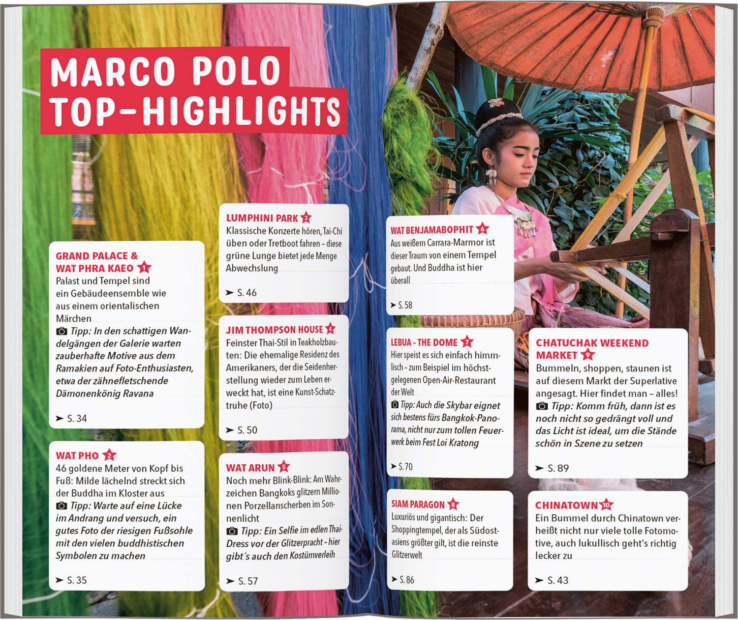 Egal, ob du einen aufregenden Städteurlaub verbringen oder in Ruhe in den Alltag der Thailänder eintauchen möchtest: Dein MARCO POLO Reiseführer Bangkok ist immer dabei!