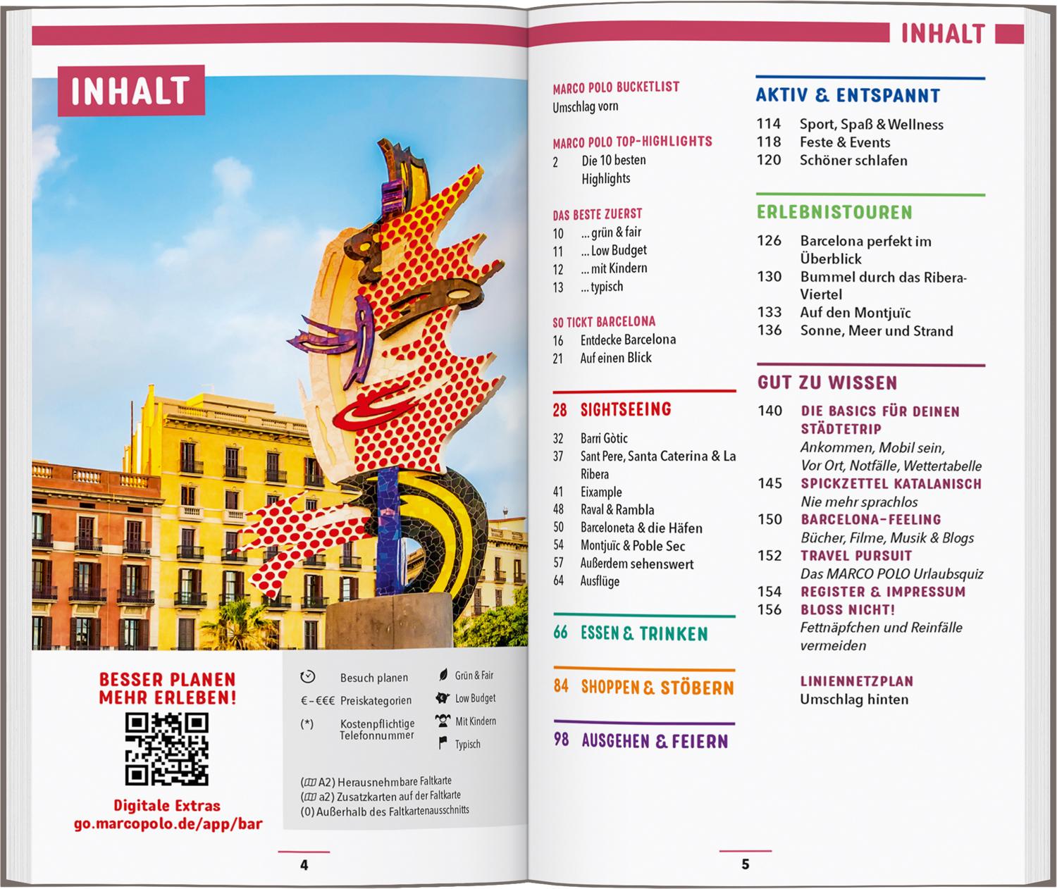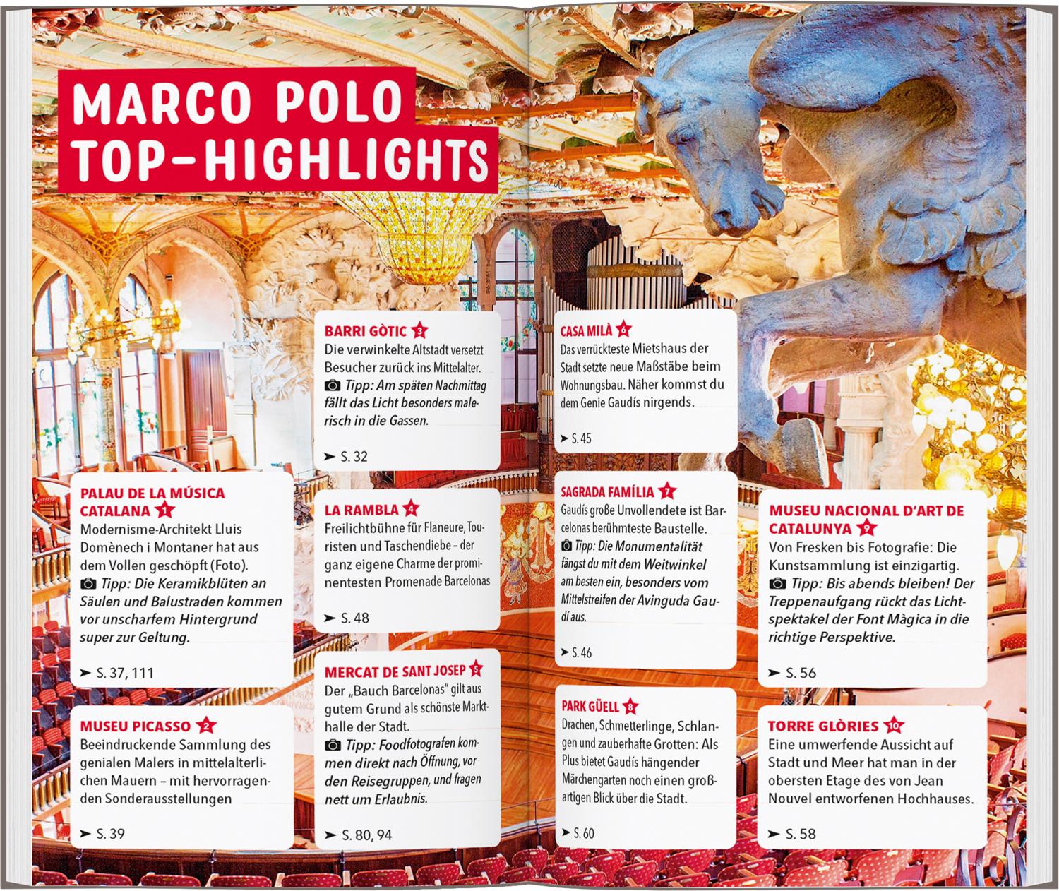 In deinem MARCO POLO Reiseführer Barcelona findest du alles, was du für deinen Urlaub brauchst: Wissenswertes zum Reiseziel, Tipps für Übernachtungen, Shopping und Sport, Infos zur Anreise und zum ÖPNV.