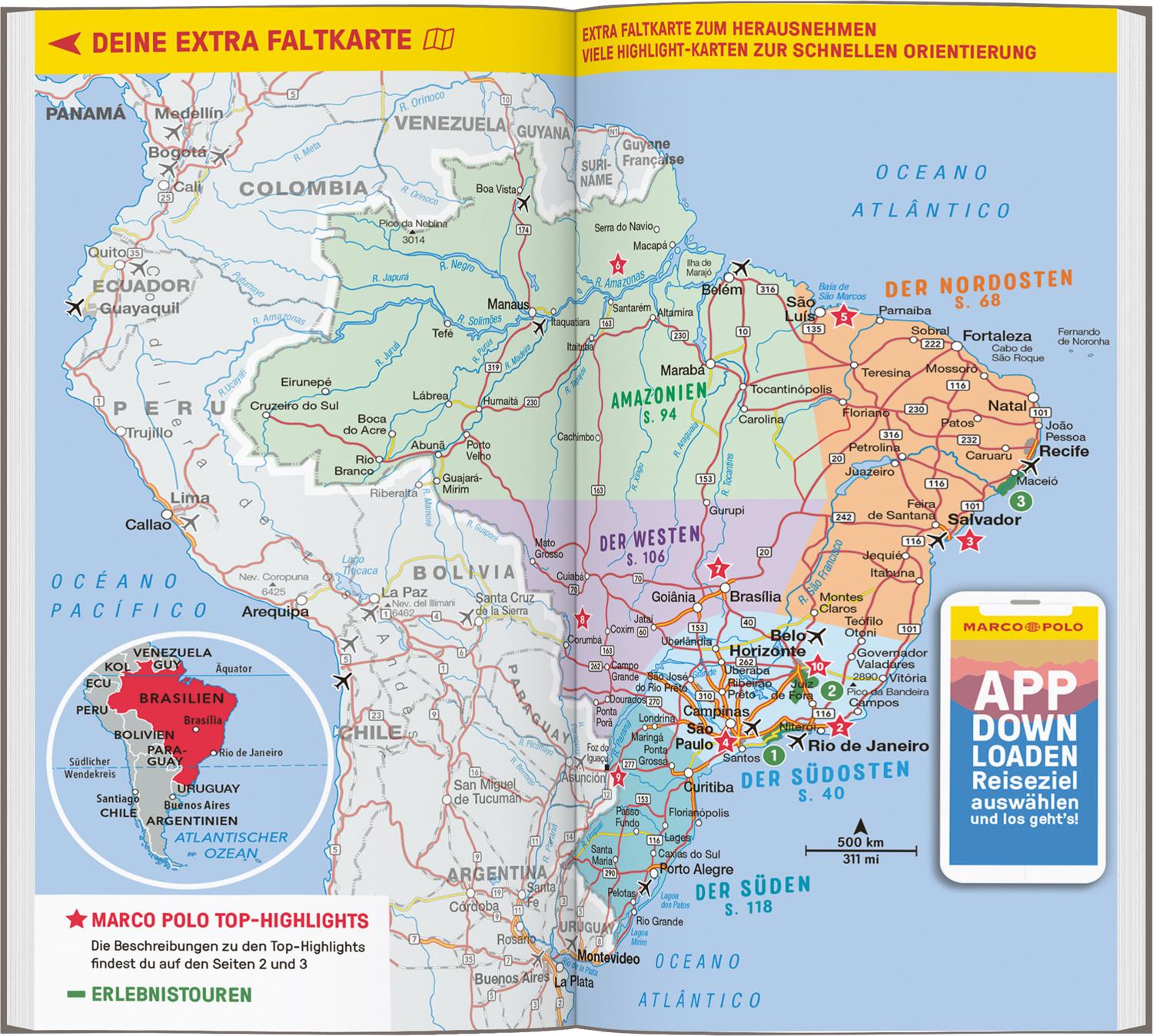 Erkunde mit dem MARCO POLO Reiseführer Brasilien Auf der Ilha Grande den schönsten Wanderrouten folgen, sich im Fußballstadion von der Stimmung mitreißen lassen oder an Rios Stränden den Sonnenuntergang bewundern: Brasilien hat unglaublich viel zu bieten. Zum Glück entgeht dir mit MARCO POLO nichts! Gestalte deine Reise ganz nach deinen Vorstellungen und stürze dich in den Dschungel der Großstadt oder des Urwalds – Abenteuer garantiert!