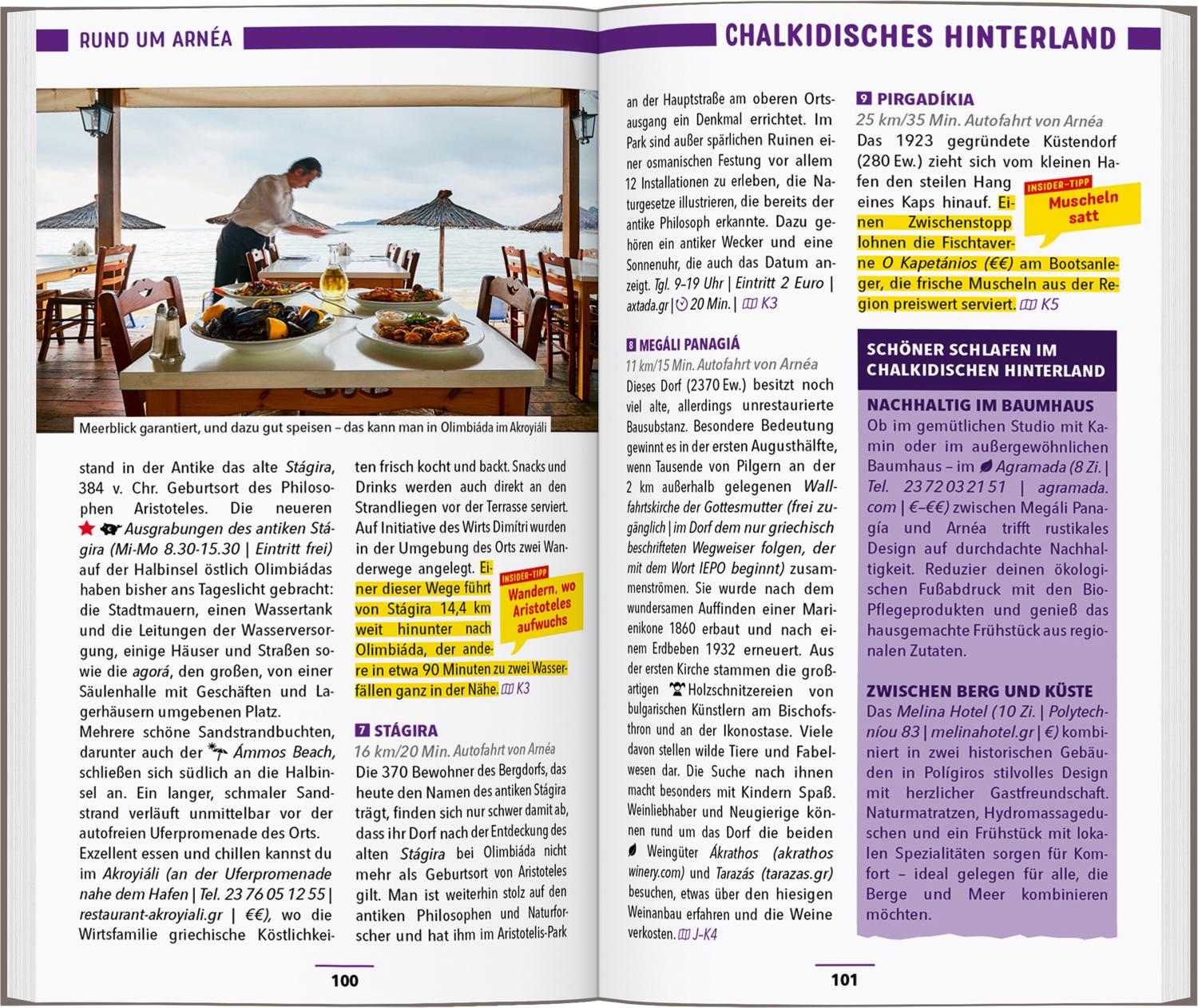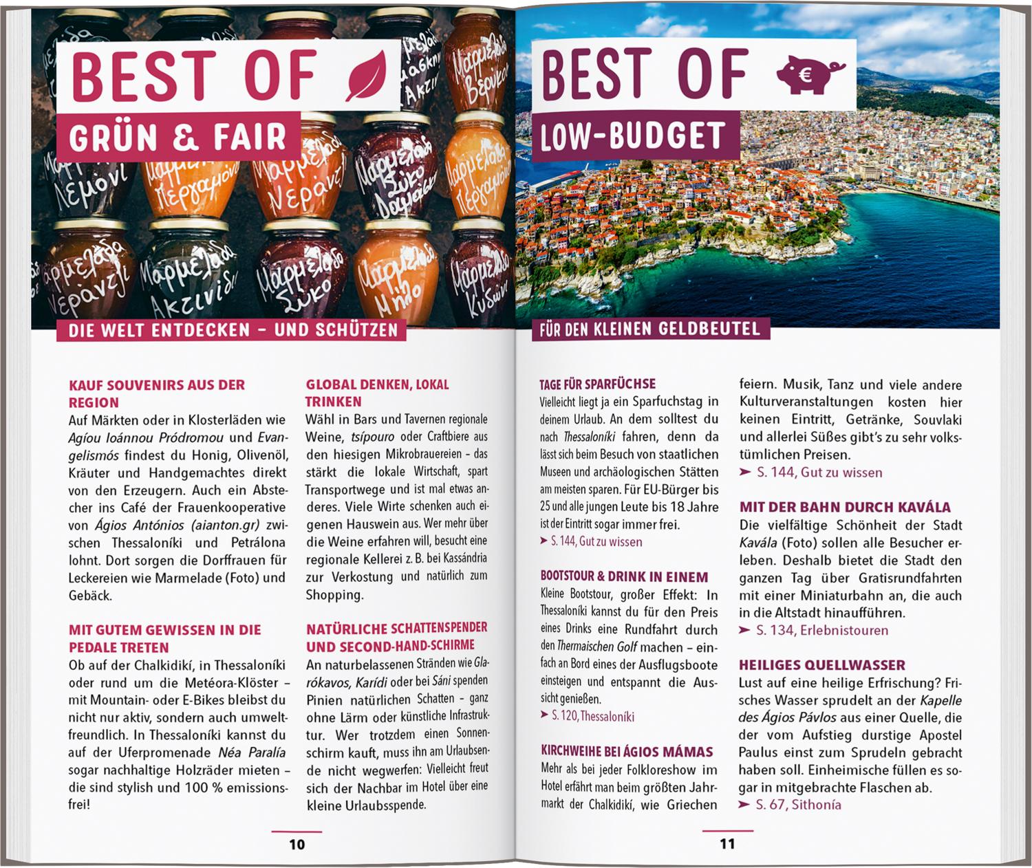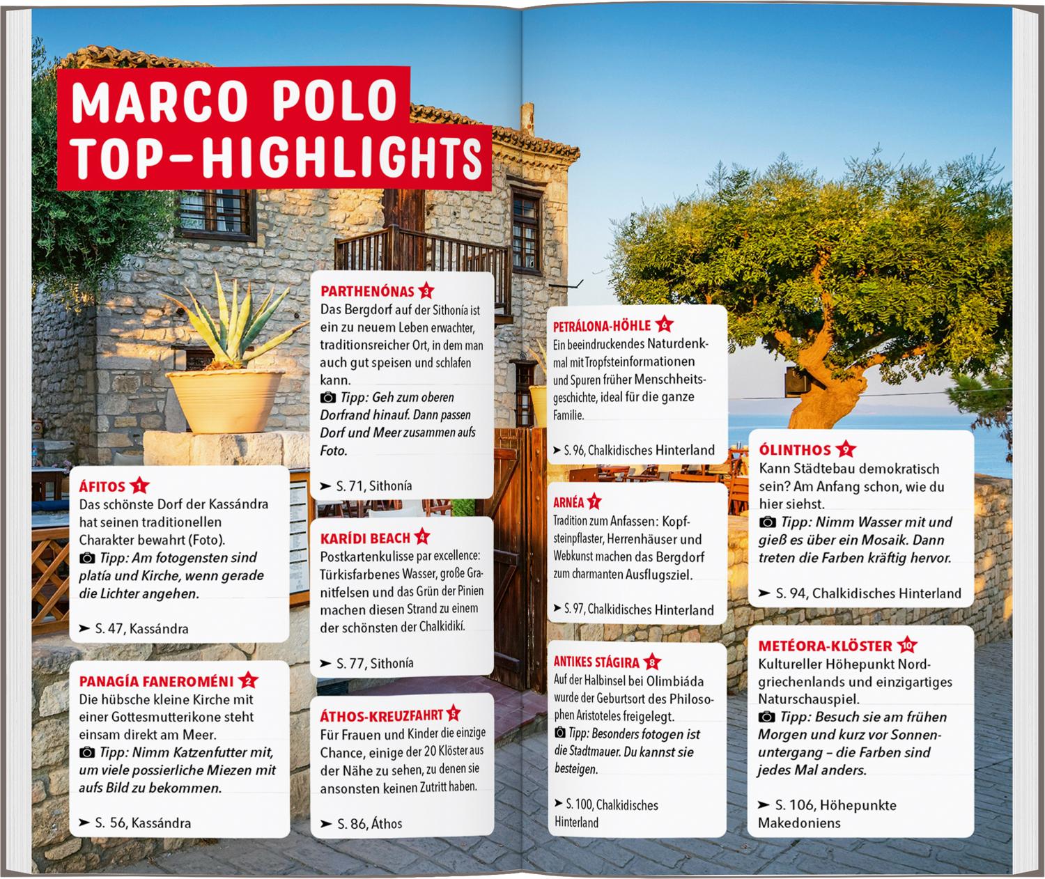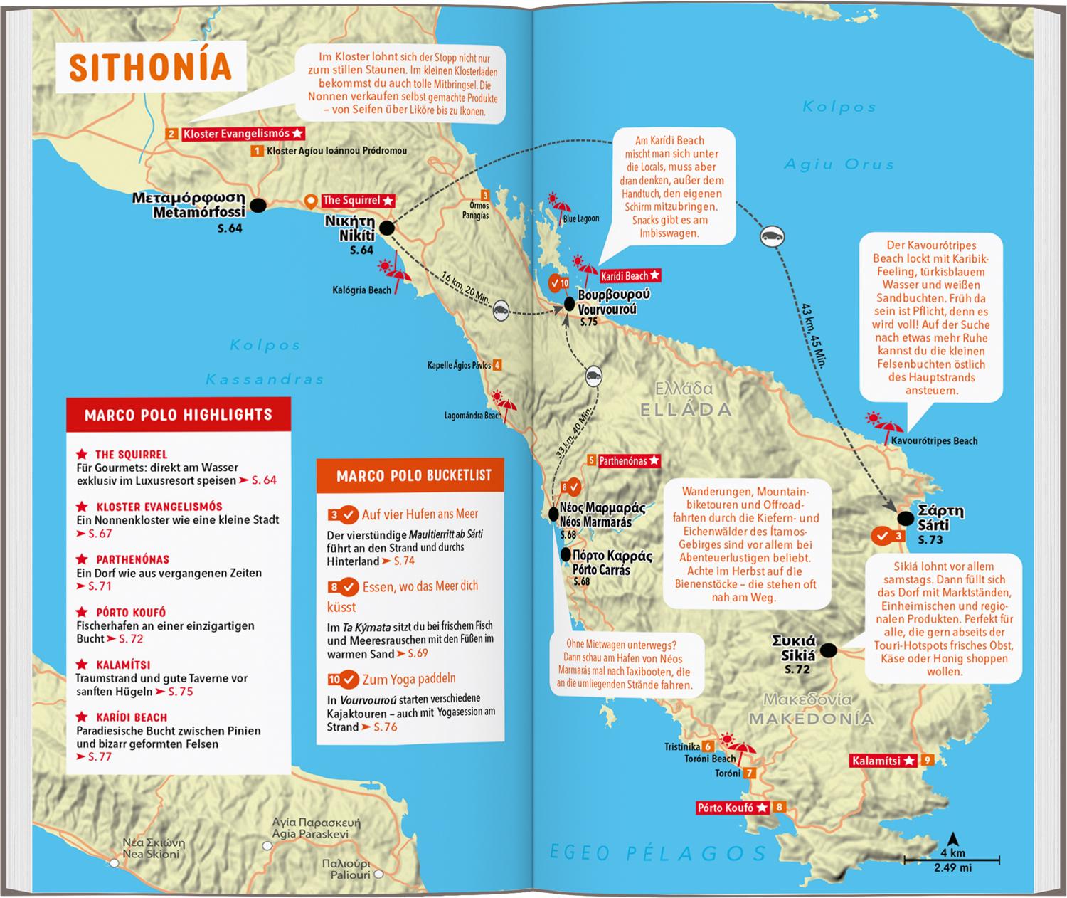 Grün und Blau siehst du in der Chalkidikí überall, egal ob du vor der Küste Kassándras Wracktauchen gehst, durch die Kiefernwälder Sithonías streifst oder vom Schiff aus einen Blick auf die Mönchsklöster von Áthos wirfst. Das ist dir nicht genug Farbenspiel? Dann stöbere auf den bunten Märkten von Thessaloníki und mache in stylischen Beachbars die Nacht zum Tag! Ob Strandtag oder Ausflug in die Natur – mit deinem MARCO POLO Reiseführer für die Chalkidikí bist du für alles bestens gerüstet!