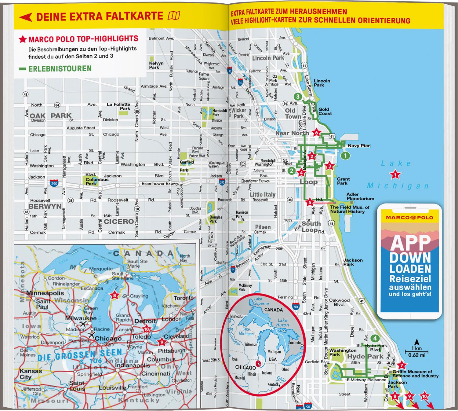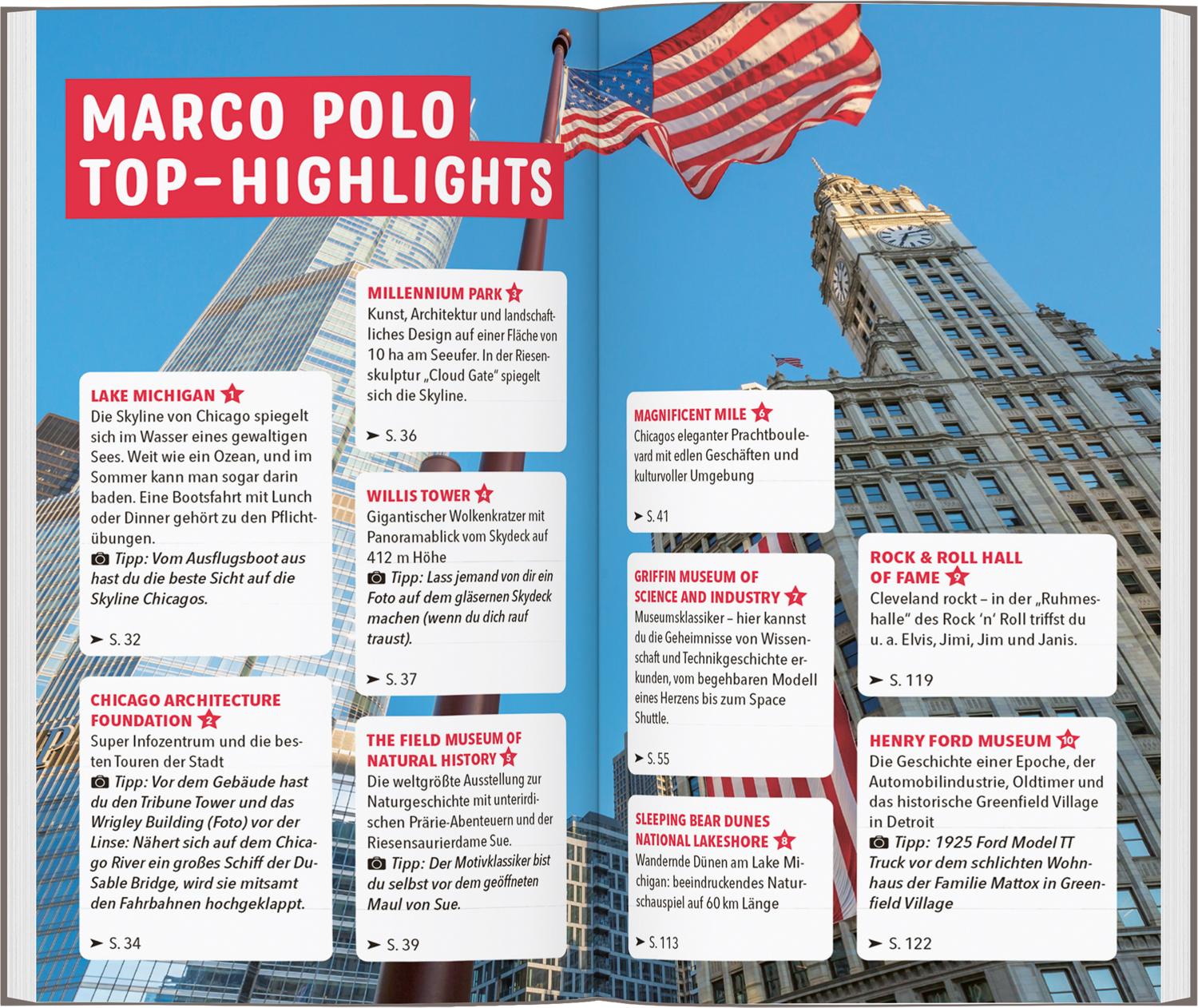 Willkommen in der Blues City! Der MARCO POLO Reiseführer für Chicago und die Großen Seen Du willst den Wolken einmal ganz nah sein? Dann ist Chicago deine Stadt! Hier ist die eindrucksvollste Skyline Amerikas in den Himmel gewachsen. Der Soundtrack dazu: eine Symphonie aus Blues, Jazz und Rock, begleitet vom Rattern der Hochbahn und dem Pfeifen des Windes in den Häuserschluchten.