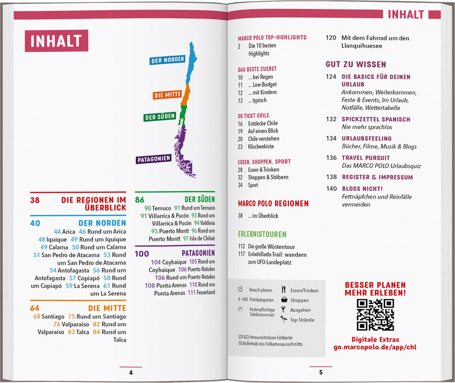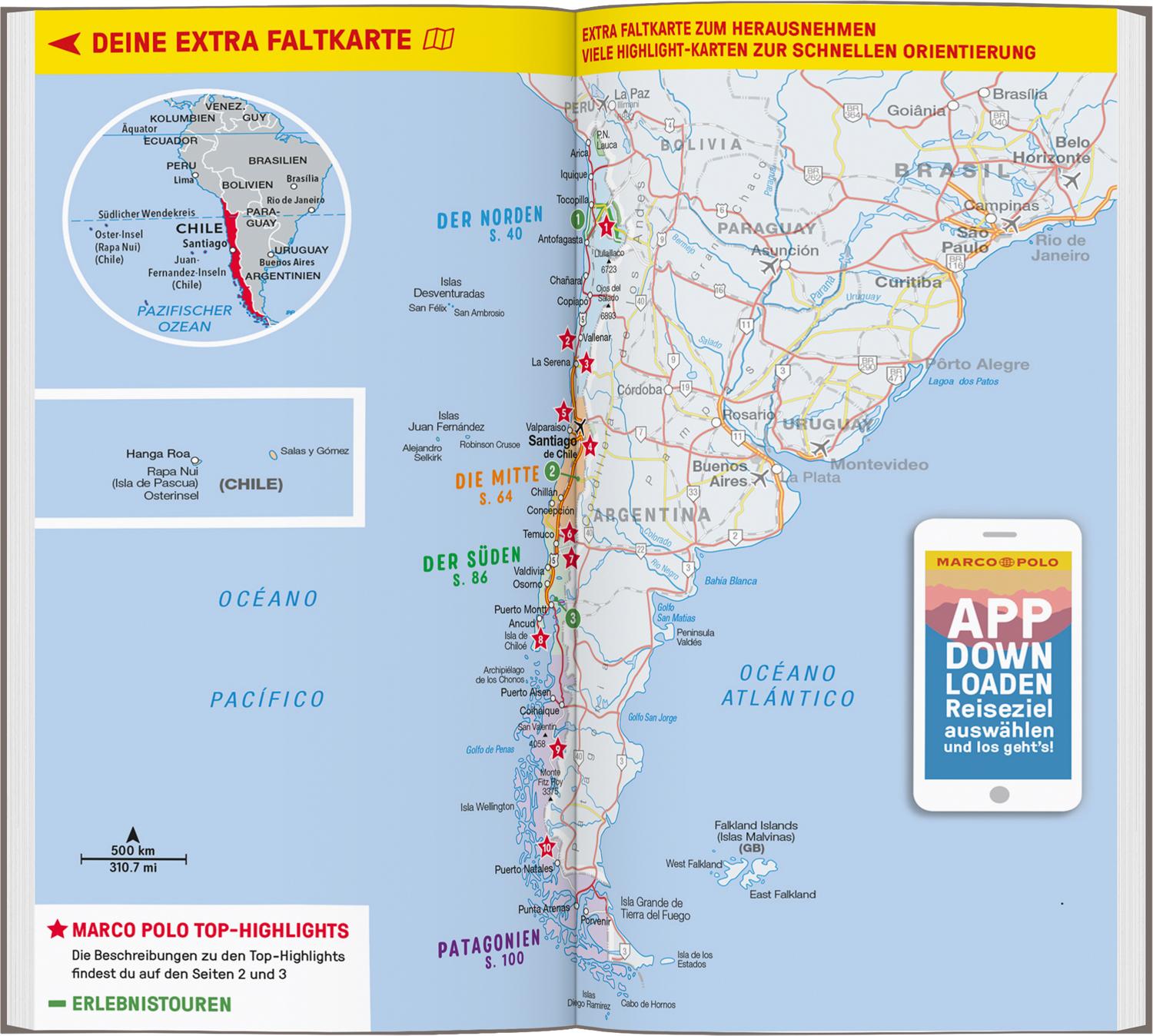 Im Fahrradsattel durch die Wüste, mit dem Surfboard auf Pazifikwellen oder auf dem Pferderücken in die Anden? Du entscheidest! Mit den Tipps in deinem MARCO POLO Reiseführer für Chile entgeht dir kein Highlight zwischen Bergen und Meer. Ob pralles Großstadtleben in Santiago oder Naturerlebnisse im Hinterland – plane ganz einfach und flexibel genau die Reise, auf die du Lust hast!