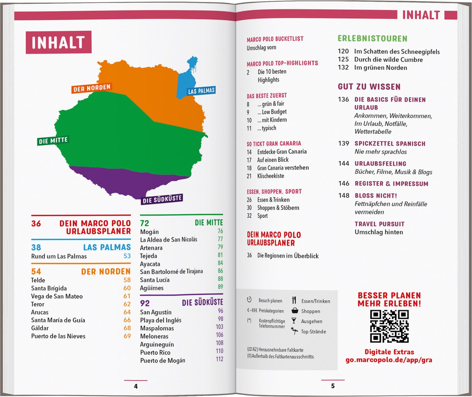 Hier wird jeder Trend aufgegriffen: großzügige Komforthotels verwöhnen dich mit Spa-Oasen, Yoga und Nordic Walking am Strand. Im Landesinneren genießt du fernab der Touri-Hotspots die Ruhe deiner Finca. In deinem MARCO POLO Reiseführer findest du alles, was du für deinen Gran Canaria Urlaub brauchst: Wissenswertes zum Reiseziel, Tipps für Übernachtungen, Ausgehen, Feiern und Sport, Infos zur Anreise und zum ÖPNV.