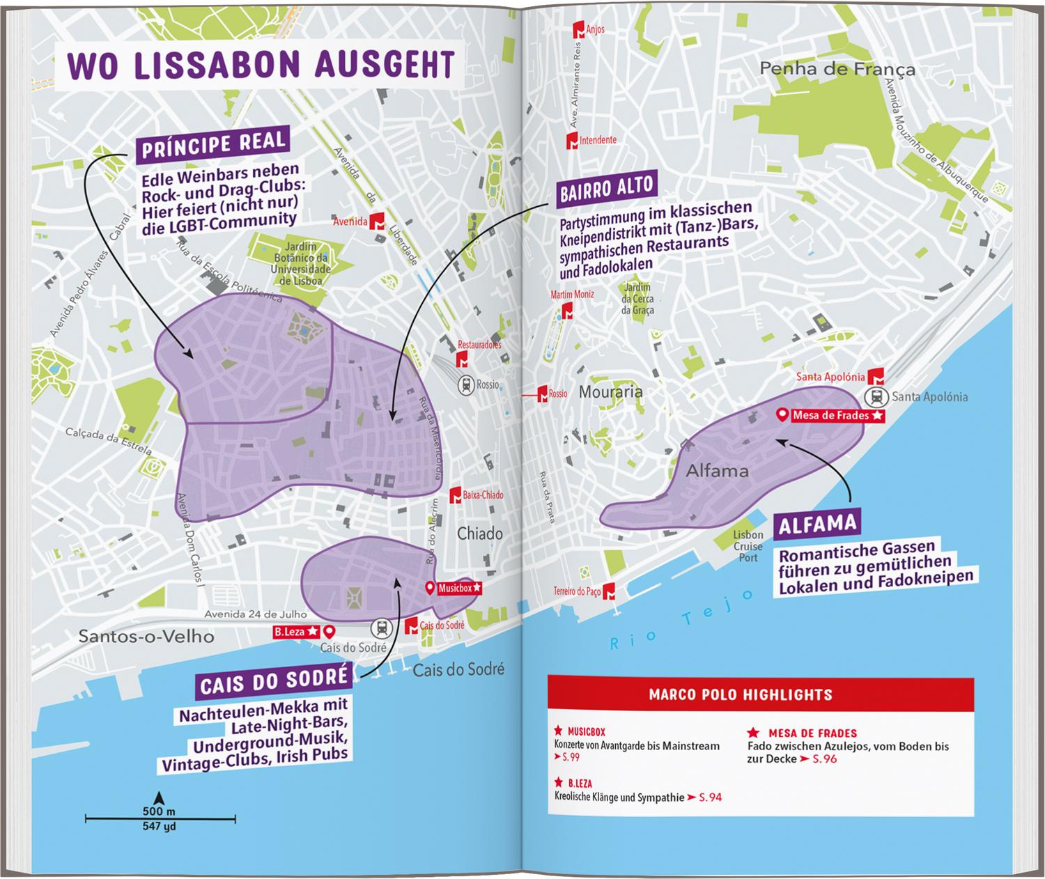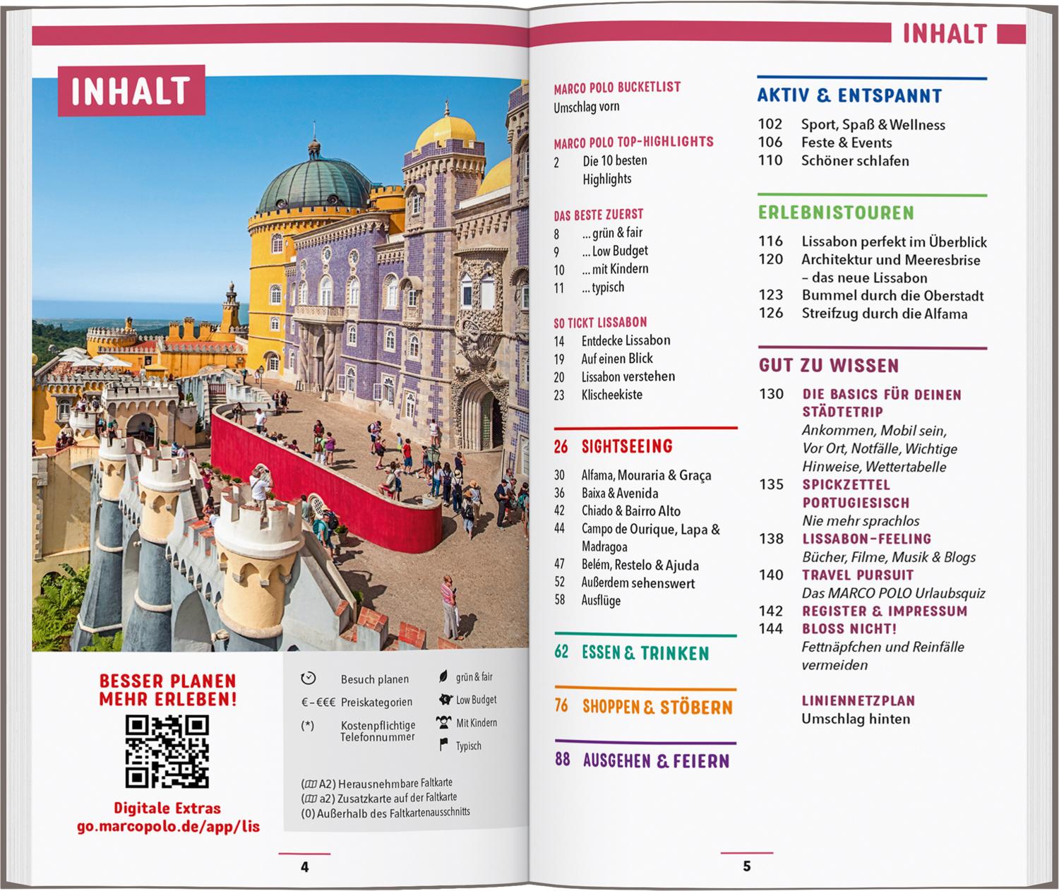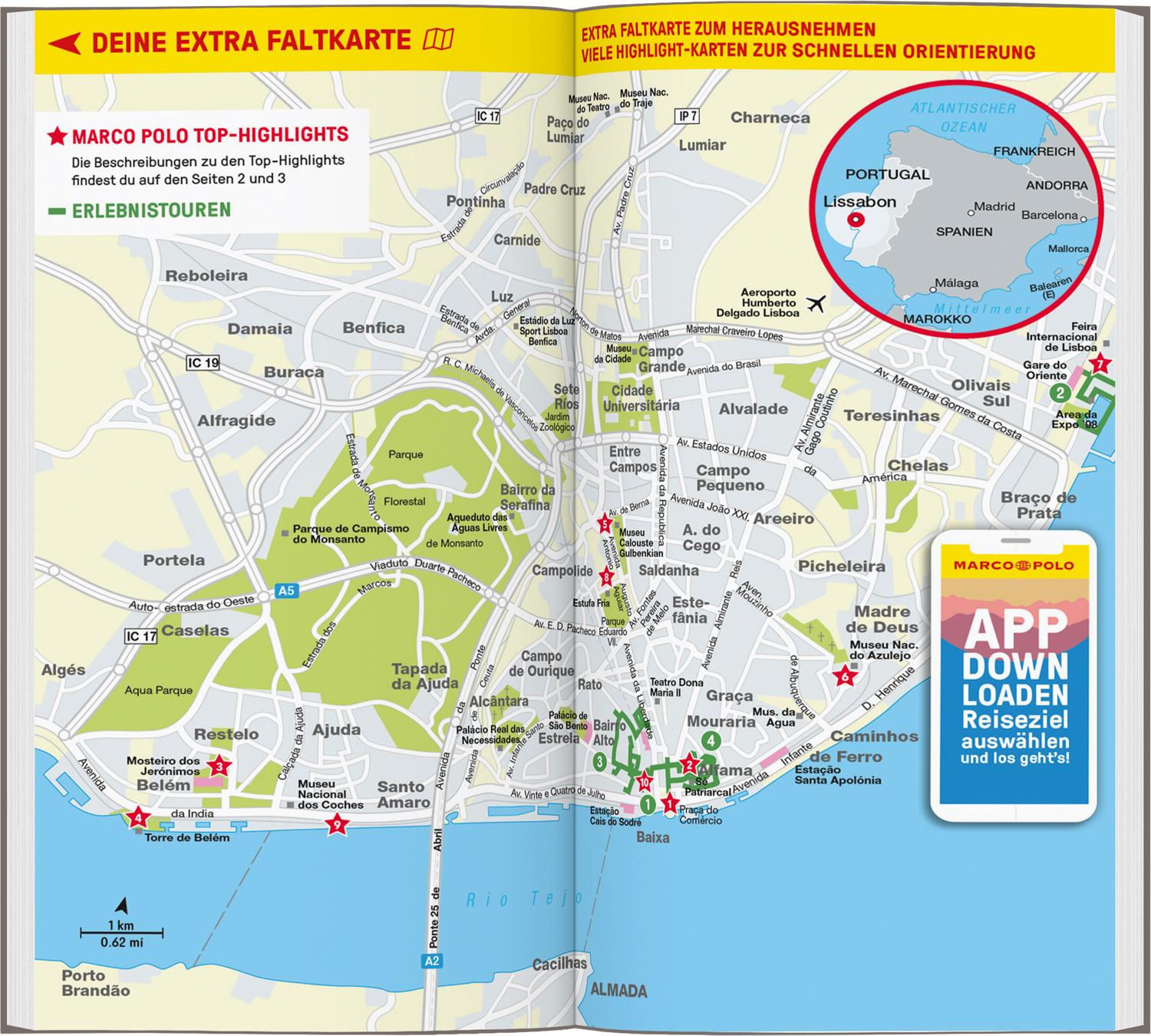 Stell dir mit den Stadtteilkarten und den Rundgängen auf Karte oder App deine eigenen Touren durch Lissabon zusammen: einfach die QR-Codes der jeweiligen Sehenswürdigkeiten scannen und in deinen Tagesplan einbinden. Bei den MARCO POLO-Erlebnistouren erkundest du Kunst und Kultur ebenso wie das Nachtleben von Lissabon.