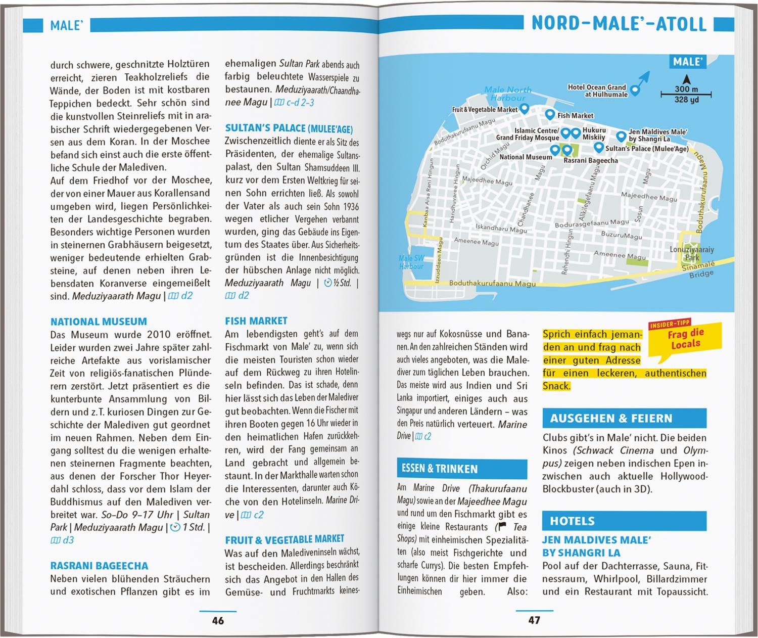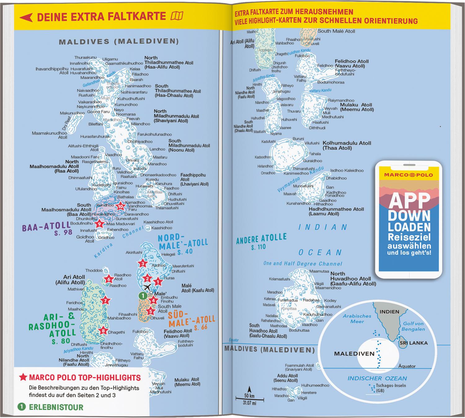 So geht Traumurlaub: Weiße Sandstrände, Schwimmen mit Walhaien und die Gastfreundschaft der Einheimischen genießen. Von den wichtigsten Hinweisen vor Reiseantritt (alles andere als Flipflops ist auf den Malediven overdressed) bis hin zu Ideen für einen gelungenen Familienurlaub – mit dem MARCO POLO Reiseführer Malediven hast du alle relevanten Infos für ein eine unvergessliche Reise praktisch zur Hand.