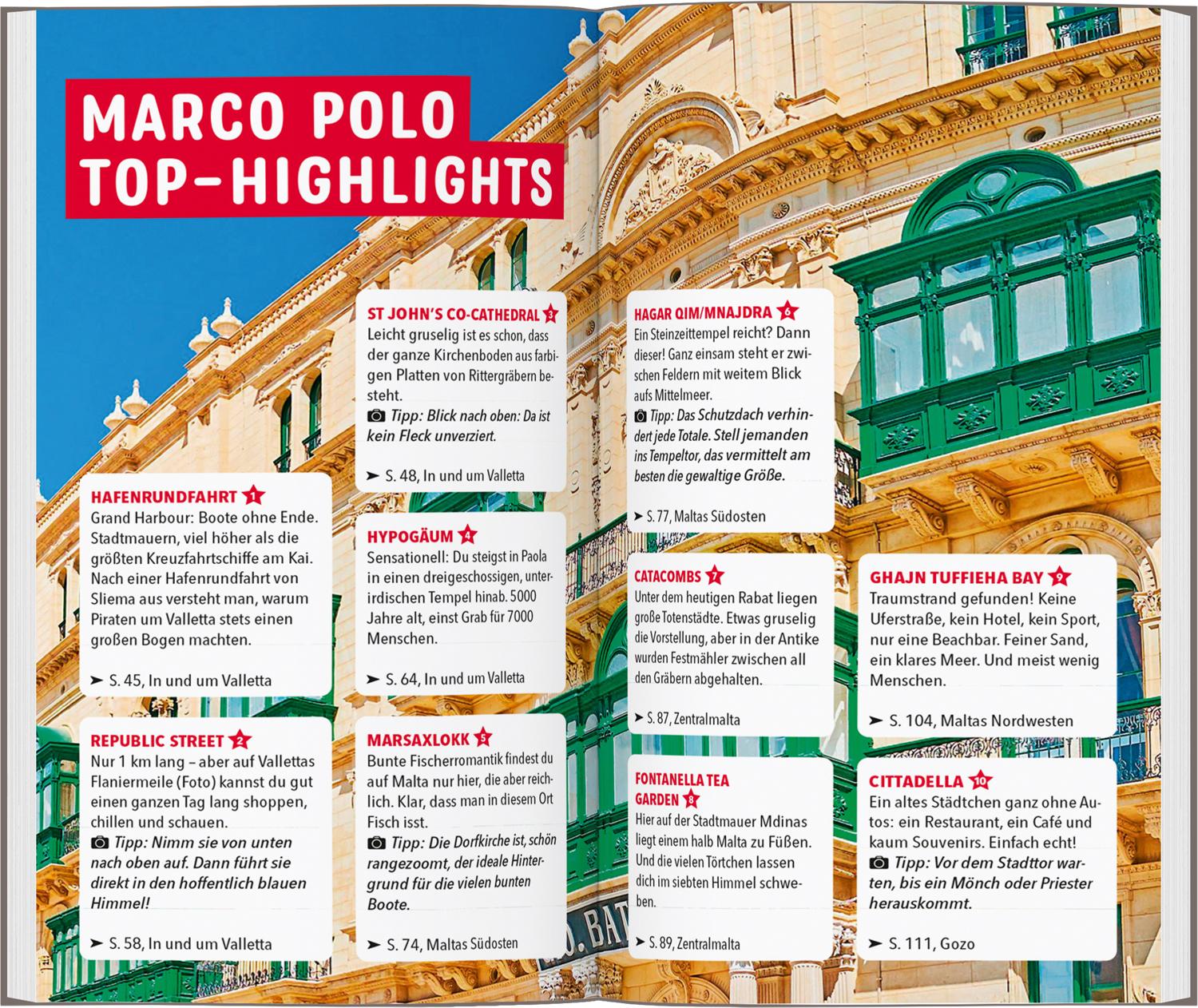 Stell dir genau die Reise zusammen, auf die du Lust hast! Dein MARCO POLO Reiseführer bietet eine Fülle von Tipps und Empfehlungen, mit denen du deinen Urlaub individuell und flexibel gestalten kannst. Ob Stadt oder Natur, aktiv oder entspannt – mit MARCO POLO wird deine Reise nach Malta und Gozo einfach unvergleichlich.