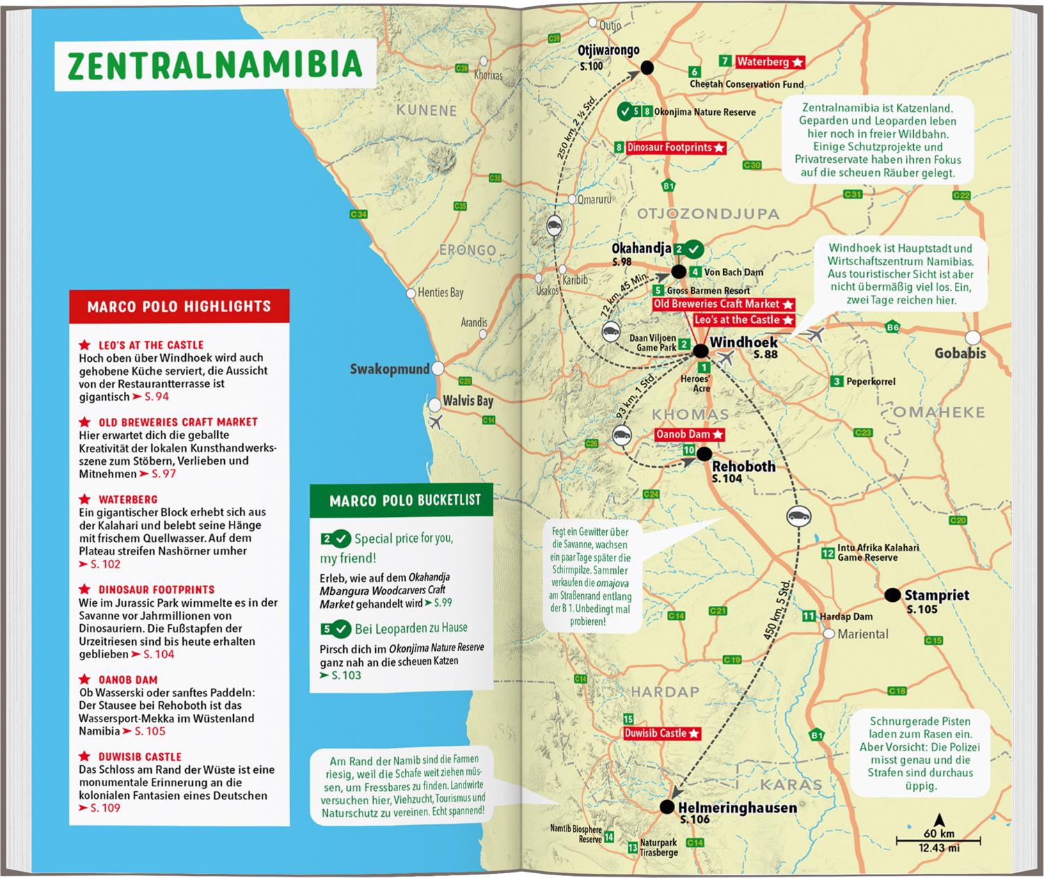 Zwischen Wasserfällen und Wüstenlandschaft: Mit dem MARCO POLO Reiseführer nach Namibia Mitten in der Kalahari-Wüste steht plötzlich ein Wegweiser mit der Aufschrift „Waterfall“. Ein Wasserfall in der Wüste? Das ist kein Scherz – dieses Naturschauspiel kannst du mit dem MARCO POLO Reiseführer Namibia selbst erleben! Wo Elefant, Giraffe und Co daheim sind, locken unberührte Natur und endlose Weiten zum Abenteuerurlaub.