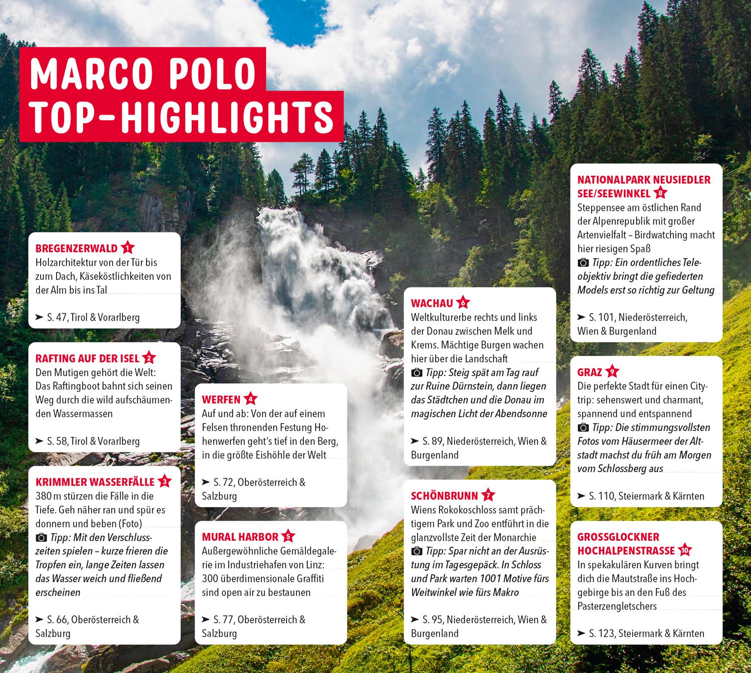 Mit deinem MARCO POLO Reiseführer Österreich weißt du immer, wo das nächste Highlight auf dich wartet und erlebst einen Urlaub voller unvergesslicher Momente!