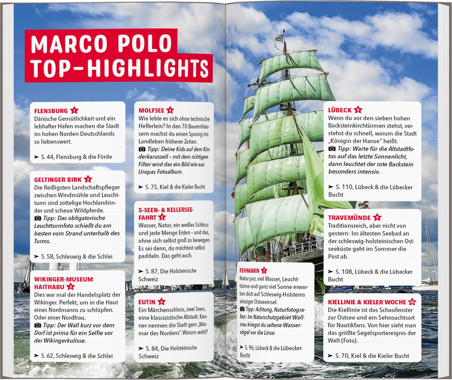 Dein MARCO POLO Reiseführer Ostseeküste Schleswig-Holstein verrät dir die besten Selfie-Spots und Must-sees der Region und steht dir auf allen Ausflügen mit hilfreichen Tipps und Infos zur Seite.