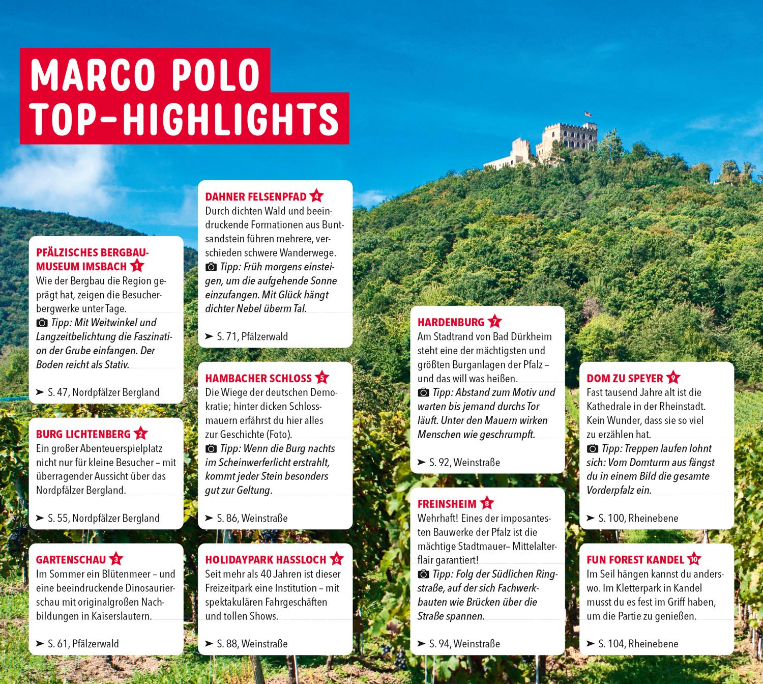 Ob Aktivurlaub oder Genuss-Reise: Mit deinem MARCO POLO Reiseführer im Gepäck verpasst du keines der vielen Highlights der Pfalz!