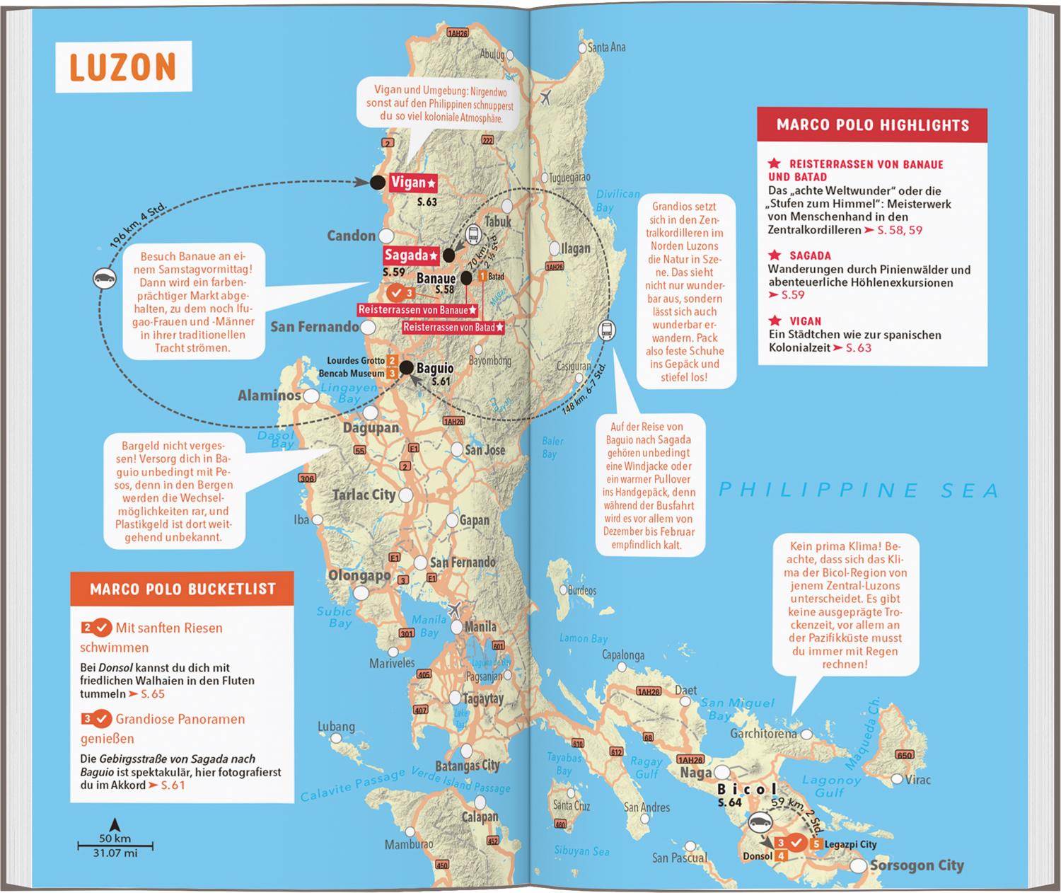 Vielfältige Philippinen: Bestaune den Sonnenaufgang von den Reisterrassen von Banuae aus, erlebe abenteuerliche Höhlenexkursionen in Sagada oder lass die Seele am White Beach auf Boracay baumeln: Plane deinen Traumurlaub mit dem MARCO POLO Reiseführer ganz nach deinen Vorstellungen und lass dir nichts entgehen. Zwischen weißem Sand und trubeligen Party-Locations wartet eine wunderschöne Zeit auf dich.