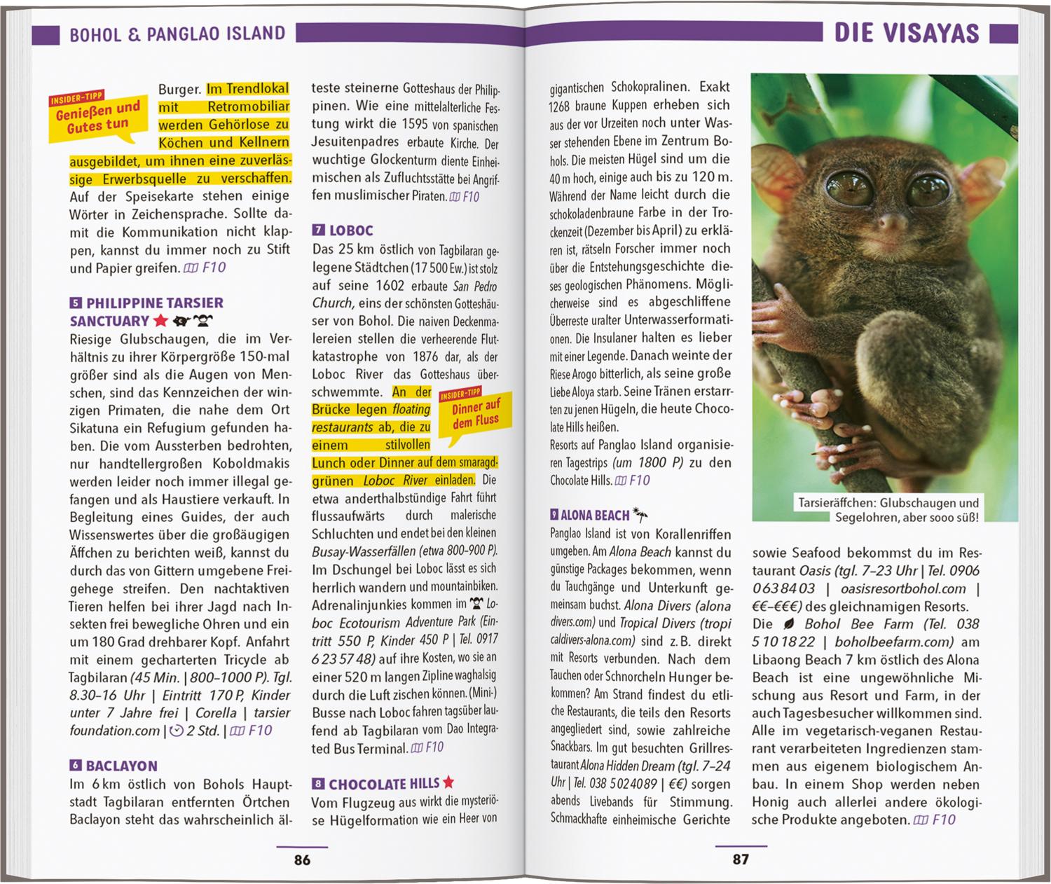 Mit Walhaien schwimmen und Feste feiern mit dem MARCO POLO Reiseführer Philippinen Ob auf Bilderbuchstränden faulenzen, sich den Einheimischen bei Festivals und Feiern anschließen oder die grandiose Aussicht vom Mount Apo genießen – die Philippinen haben viel zu bieten! Dank des MARCO POLO Reiseführers verlierst du nie den Überblick und kannst deinen Traumurlaub in aller Ruhe schon vor Reiseantritt planen. So entgehen dir weder die Chocolate Hills, noch die schönen und versteckten Ecken der Hauptstadt Manila. Lass dich verzaubern und erlebe ein Abenteuer, das du dein Leben lang nicht vergisst!