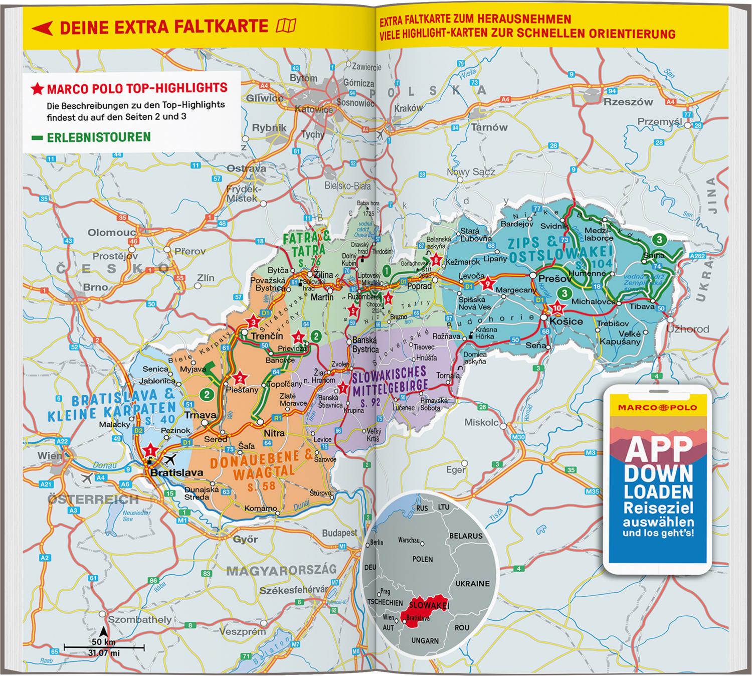 Mit dem MARCO POLO Reiseführer hast du alles im Gepäck, was du für deinen Urlaub in der Slowakei brauchst. Empfehlungen für Bücher, Blogs und Playlists bringen dich direkt in Urlaubsstimmung. Mit den praktischen Infos zu Anreise, Land und Leuten bist du bestens vorbereitet. Aus den vielen Tipps für Sightseeing-Highlights und Unternehmungen kannst du dir deine persönlichen Must-sees zusammenstellen. Schon vor der Reise zu Hause oder spontan unterwegs – du entscheidest! Ob Aktivurlaub oder Entspannung pur, mit deinem MARCO POLO Reiseführer wird jeder Tag in der Slowakei zum Erlebnis.