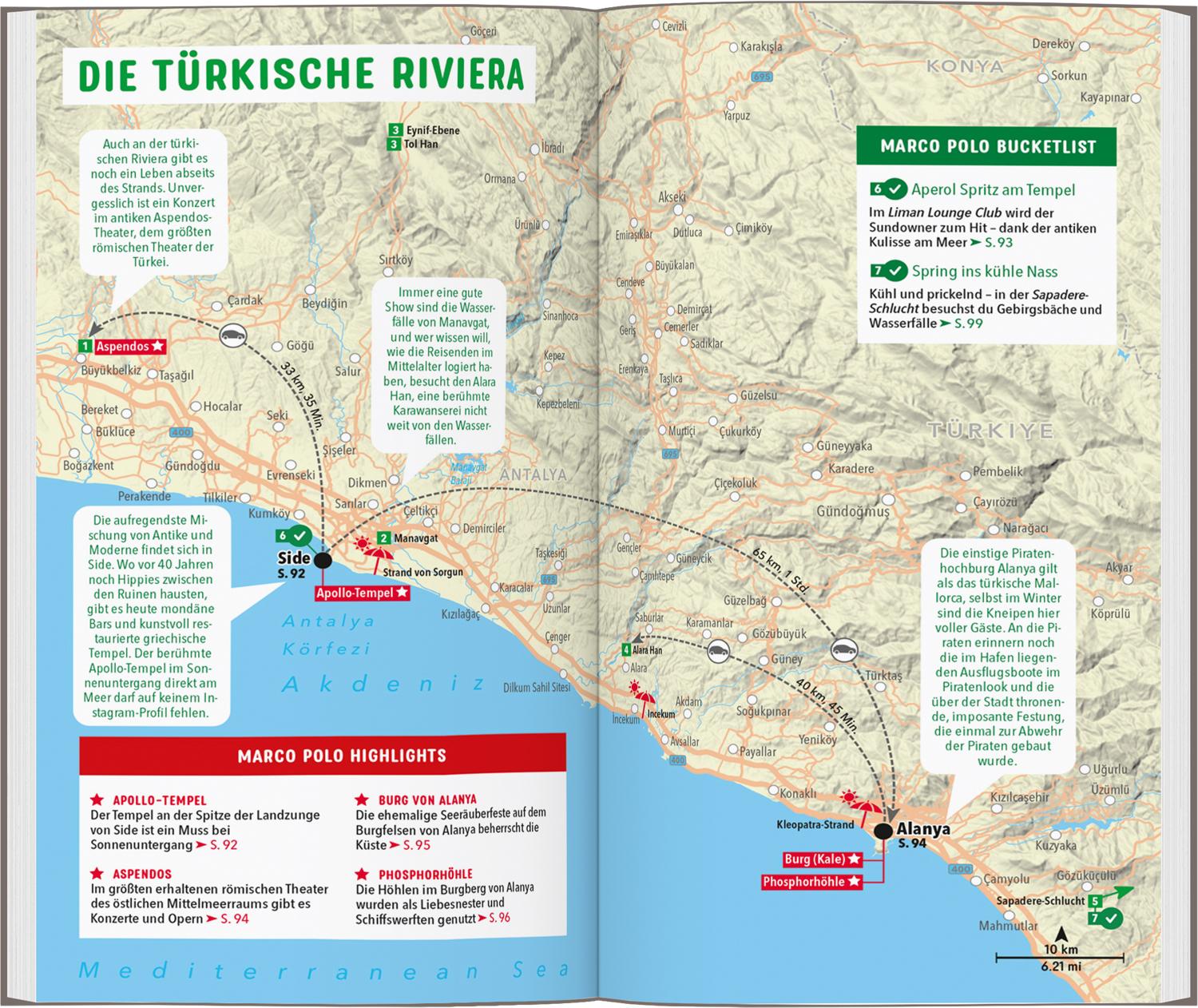 Urlaub zwischen Sandstränden und Steilküsten: Mit dem MARCO POLO Reiseführer an die türkische Südküste Im Vordergrund feiner Sandstrand, antike Tempel und im Hintergrund schneebedeckte Berge: Die türkische Mittelmeerküste sieht nicht nur aus wie das perfekte Postkartenidyll, sie ist es auch! Mit dem MARCO POLO Reiseführer findest du die besten Spots und Unternehmungen zwischen Marmaris und Antakya und stellst dir genau das Reiseprogramm zusammen, auf das du Lust hast.