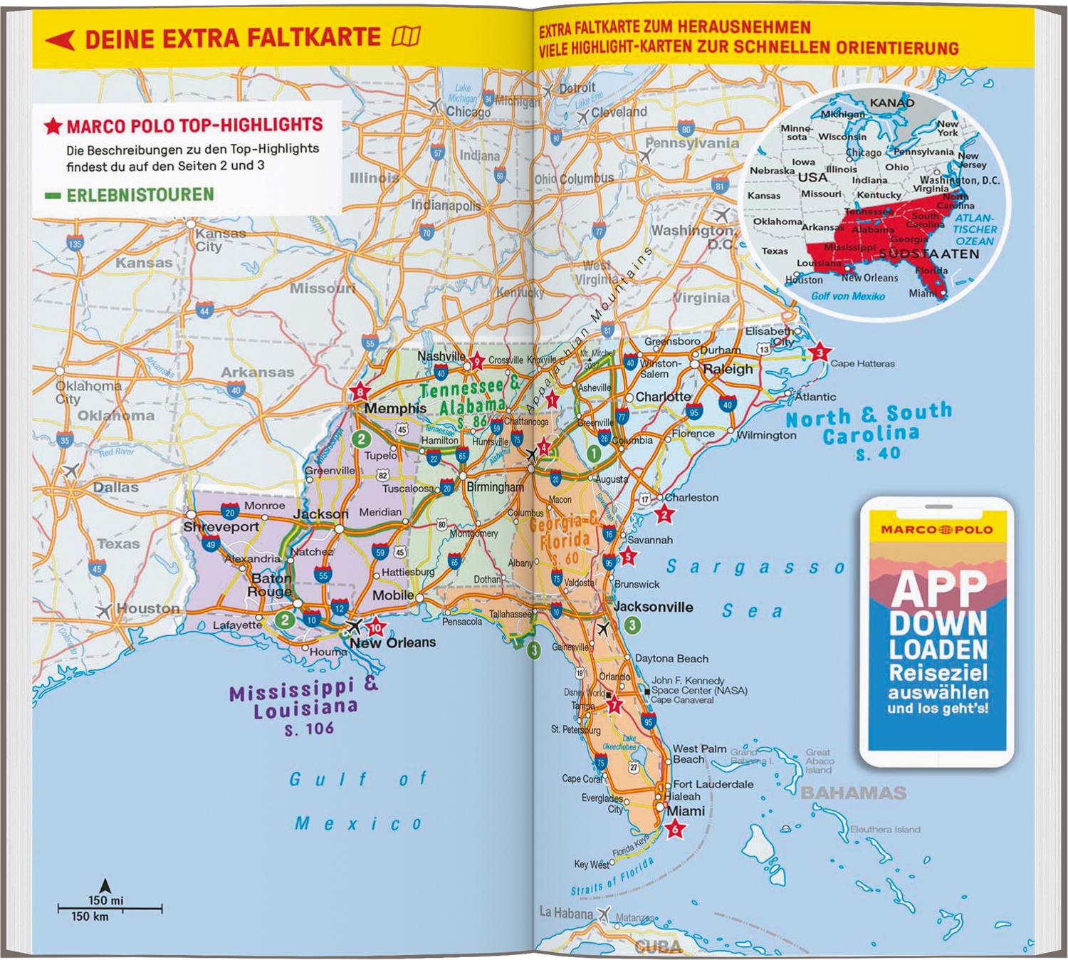 Die Tipps in deinem MARCO POLO Reiseführer für die Südstaaten der USA führen dich ohne lange Vorbereitung zu den Highlights der Region. So wird dein Urlaub maximal entspannt!