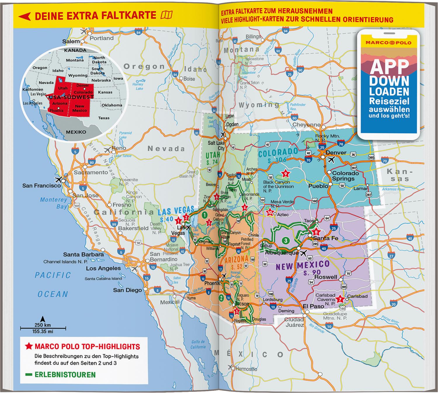 Mit dem MARCO POLO Reiseführer durch den Südwesten der USA: Entdecke Las Vegas, Colorado, New Mexico, Arizona, Utah, Rote Canyons, uralte Siedlungen, riesige Kakteen und mittendrin glitzernde Großstädte: Kaum eine Region der USA ist so gegensätzlich wie die Wüstenstaaten im Südwesten. Kein Wunder, dass sie so oft als Filmkulisse herhalten dürfen.