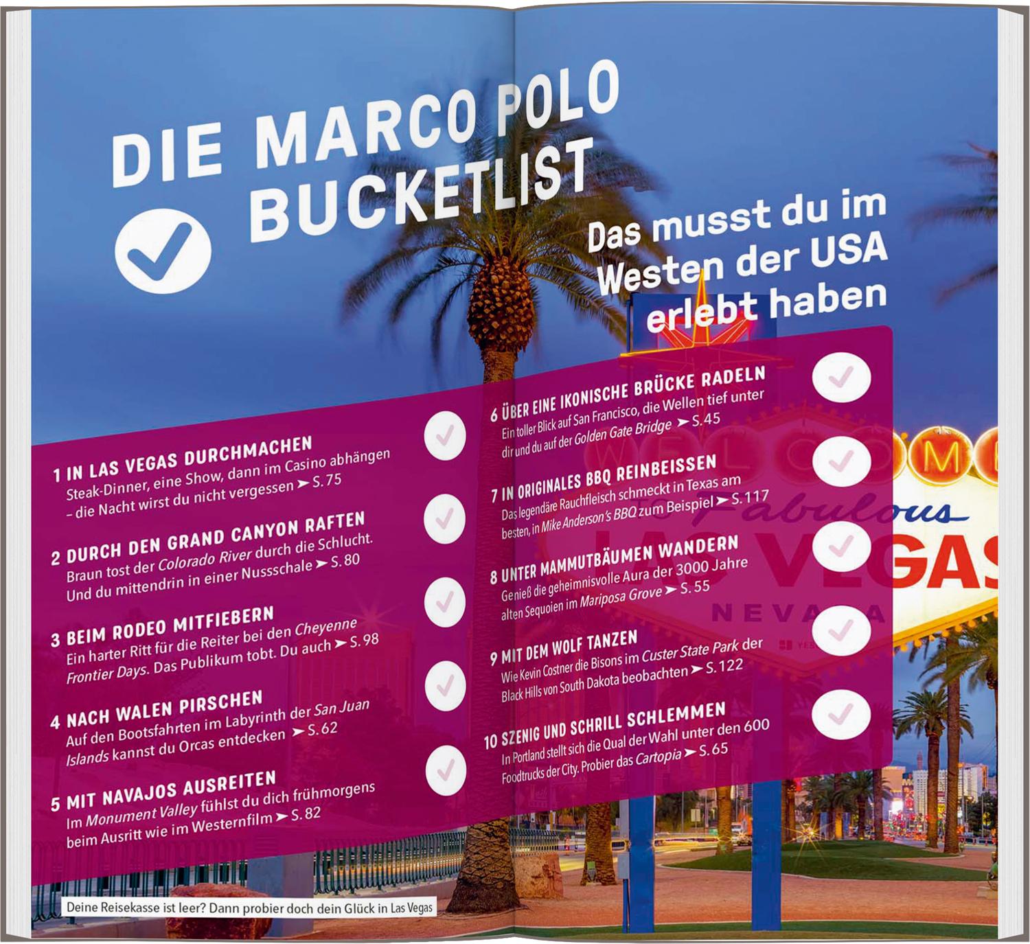 Mit dem MARCO POLO Reiseführer USA West hast du alle Regionen im Überblick: Von Kalifornien, über den Nordwesten mit Seattle und Portland, die Rocky Mountains mit Salt Lake City über den Südwesten mit Las Vegas bis nach Texas. In deinem MARCO POLO Reiseführer findest du alles, was du für deinen Urlaub brauchst: Wissenswertes zum Reiseziel und zur Anreise, Tipps für Übernachtungen, Shopping, Sport und einzigartige Erlebnistouren.