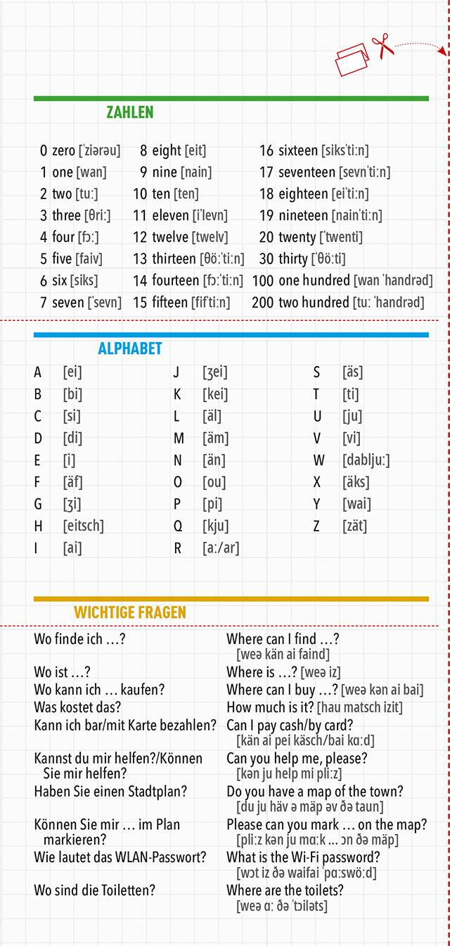 Einfach kurz nach dem Weg fragen? Einen netten Plausch mit Einheimischen führen? Die exotische Speisekarte im Restaurant verstehen? Auch in Notfällen blitzschnell reagieren können? In all diesen Situationen hilft der MARCO POLO Sprachführer Englisch weiter. Der Sprachführer im Taschenformat ist nach Reisethemen geordnet und gibt dank des einfachen Farbleitsystems schnelle Orientierung. Das Reise-Wörterbuch sorgt dafür, dass du in jeder Situation die richtigen Worte parat hast und mitreden kannst. Für das ganz leichte Gepäck ist der heraustrennbare Spickzettel mit den allerwichtigsten Wendungen perfekt. Und solltest du doch mal sprachlos sein: Da helfen die praktischen Zeigebilder ganz unkompliziert weiter.