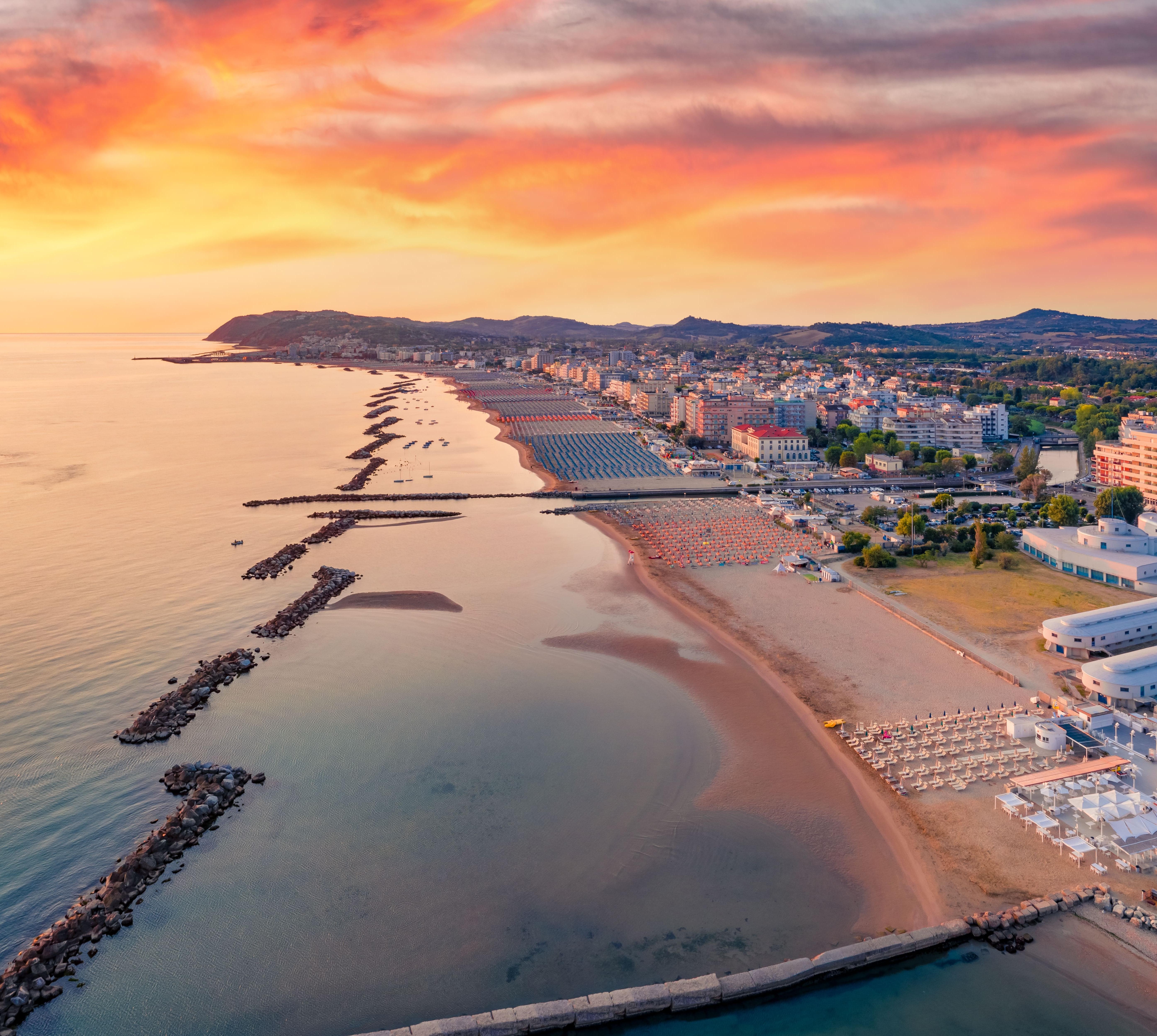 Die Stadt mit römischen Wurzeln und hübschem Zentrum ist der familienfreundlichste Badeort. Jenseits des Badevergnügens wartet eine Attraktion für Groß und Klein: Am Strand steht ein modernes Aquarium, u. a. mit Haifischbecken, 3000 Arten von Meeresbewohnern und 3-D-Film über das Leben im Ozean. Am Strand sind hier besonders noble – und teure – bagni zu finden. Schöner als der voll gestopfte Ortsstrand ist der sich südlich anschließende Strand von Gabicce Mare, wo man wieder den Sand unter den Füßen sieht.