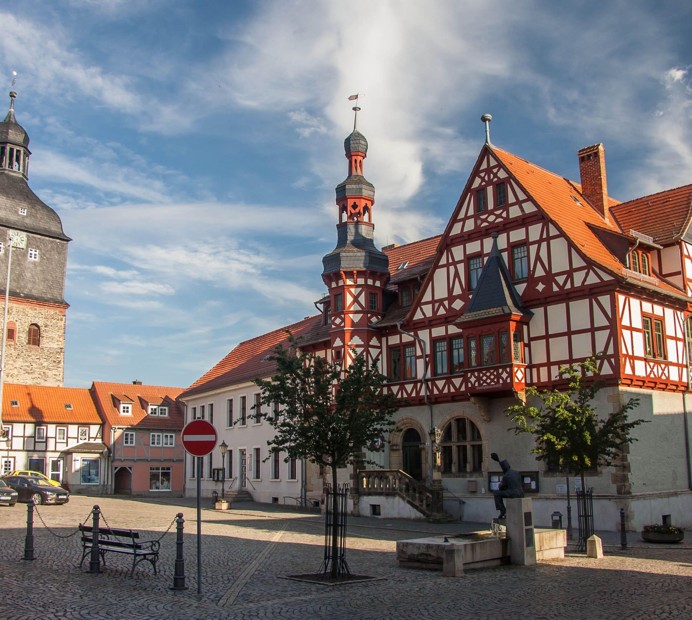 Am Rand der Altstadt steht das befestigte Schloss, dessen Festsaal einen bemerkenswerten Parkettboden aus 18 verschiedenen Harzer Holzarten hat.
