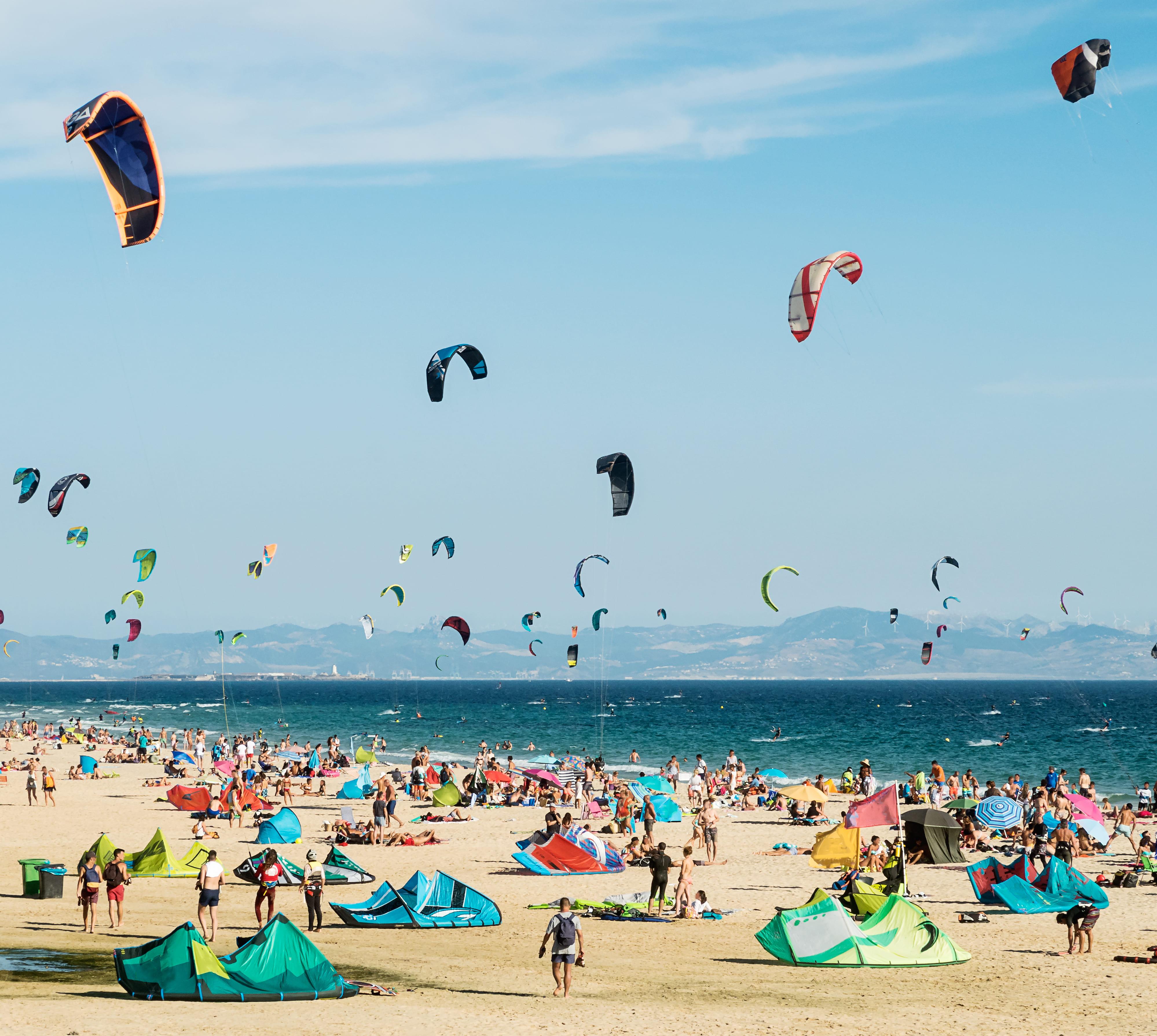 Eines der attraktivsten Windsurfgebiete Europas: die Strände von Tarifa am südlichsten Ende der Iberischen Halbinsel. Nordwestlich von Tarifa liegt die Surfschule Spin Out.
