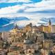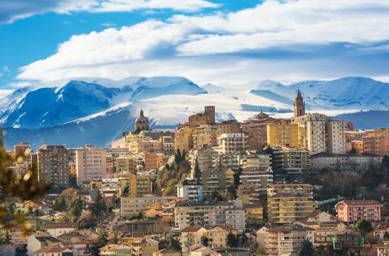 Durch eindrucksvolle Berglandschaft gelangt man von Rom oder von der adriatischen Küste über Teramo in diese hübsche mittelalterliche Berg- und Universitätsstadt (70 000 Ew.), Hauptstadt der Region Abruzzen, im Blickfeld das imposante Massiv des Gran Sasso.