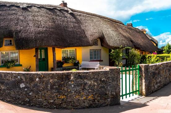 "Irlands schönstes Dorf" bezaubert mit Adare Manor, ein im gotischen Stil erbautes Anwesen mit 75 Kaminen und unzähligen bleiverglasten Fenstern.