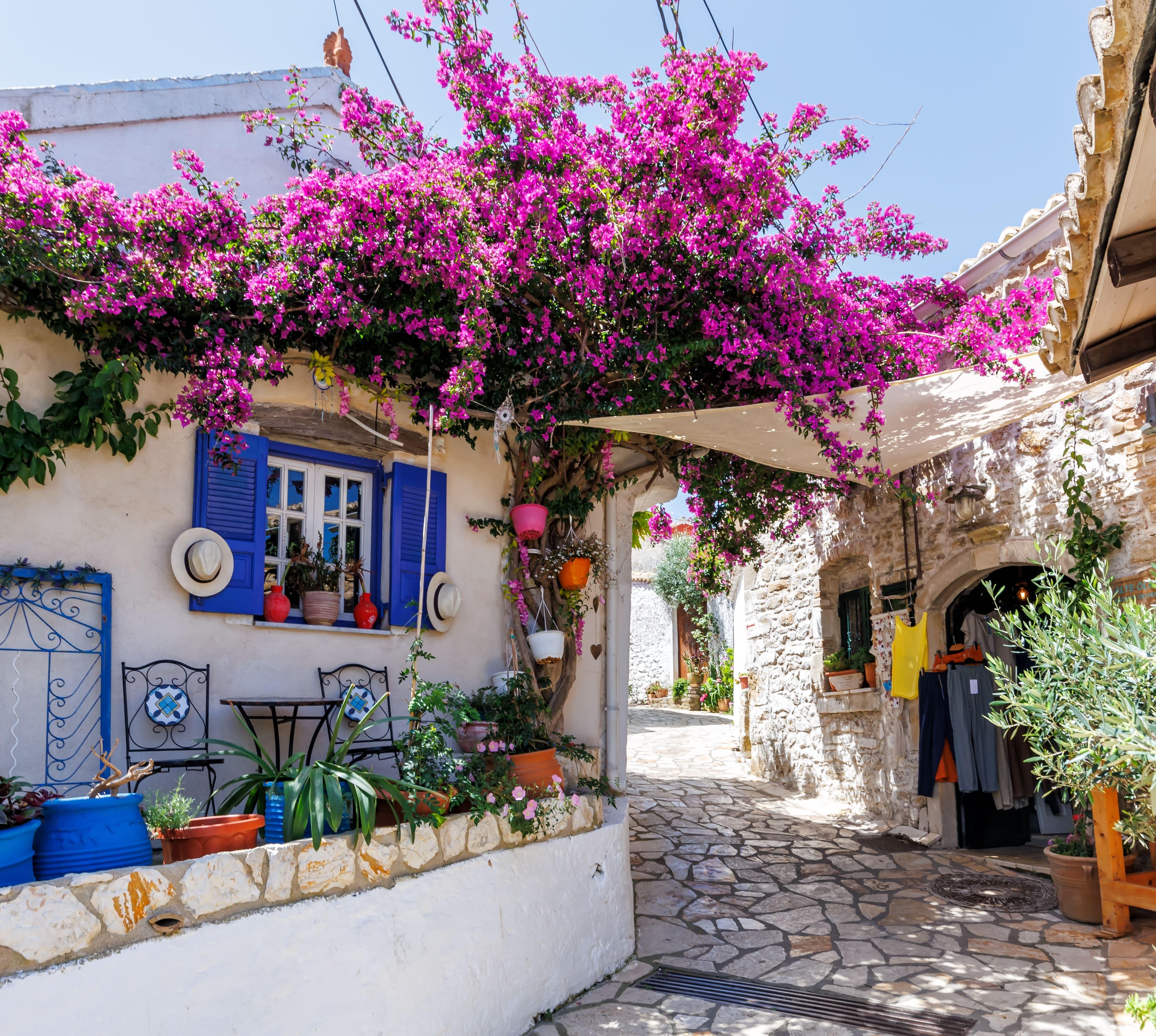 Makrádes ist ein großes Bergdorf mit vielen alten Häusern und schmalen Gassen. Nirgends sonst auf Korfu haben sich mehr Einwohner auf den Verkauf von Kräutern und heimischem Landwein spezialisiert als hier. Die heftige Konkurrenz zwingt sie, jeden vorüberfahrenden Wagen durch heftiges Gestikulieren zum Anhalten zu bringen.