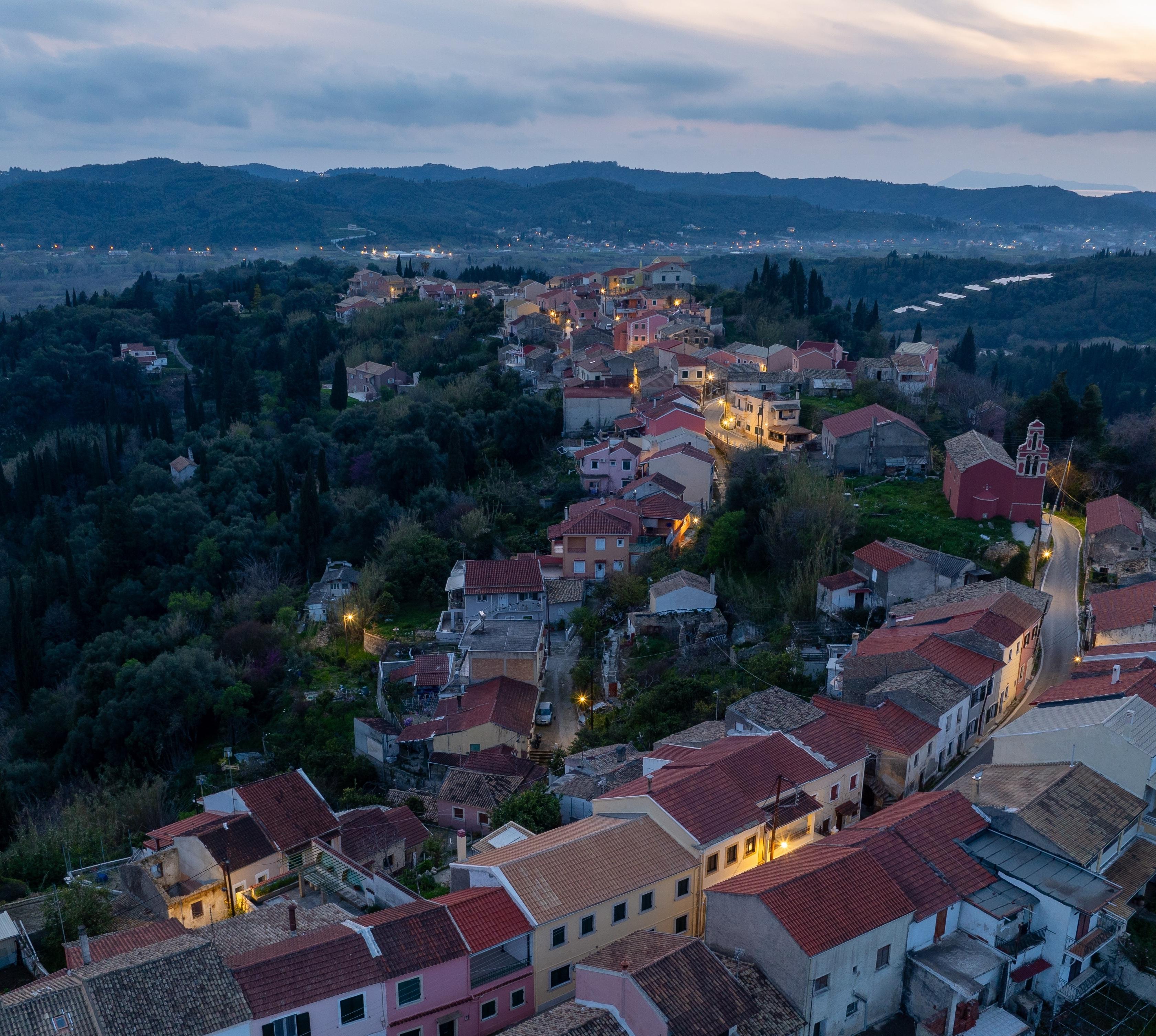 Die Evstrámenou-Kirche am Dorfrand von Nímfes ist weltweit einzigartig, jedoch nur von außen zu besichtigen. Das Ortszentrum liegt am anderen Ende des Dorfs am Rande eines Tals, in dem zahlreiche Koum-Kouát-Bäume wachsen. Die einfachen Tavernen hier servieren außer im August nur abends Essen.