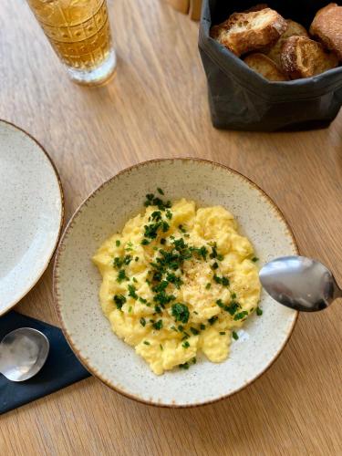 Ein Frühstückskorb mit Gourmetprodukten kann auf Anfrage vor 07:00 Uhr gegen Aufpreis geliefert werden. Dieser enthält Brot und Croissants.