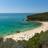 Kleine Bucht mit Sandstrand zu Füßen des Küstengebirges, an der sich auch Einheimische gern einfinden.