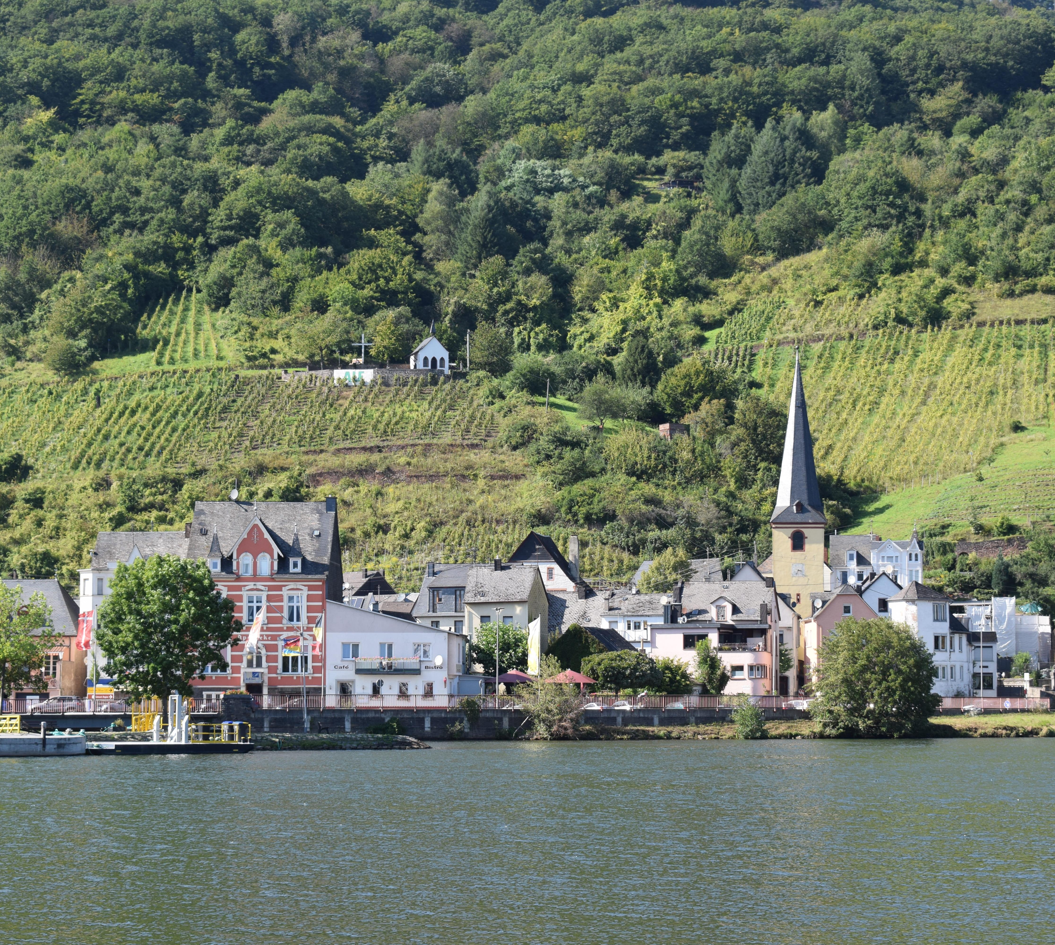 Die rund 700 Ew. von Bremm teilen sich einen hübschen und lebendigen Ort mit Fachwerkhäusern wie dem prächtigen Storchenhaus von 1686.Von der Uferpromenade aus blickst du auf das Kloster Stuben: Die Ruine ist ein idealer Ort für romantische Picknicks. Umgeben von verfallenen gotischen Bögen sitzt man auf sattgrünem Rasen und sieht den steilsten Weinberg Europas. Durch ihn ist der Ort weltberühmt geworden. Der Calmont, der „heiße Berg“, überragt die Klosterruine mit einem Gefälle von rund 70 Grad. Nach und nach wird der verwilderte Weinberg derzeit rekultiviert und seiner Bestimmung als Eins-a-Weinlage wieder zugeführt. Ein Klettersteig mit teils alpinem Schwierigkeitsgrad macht ihn für Trittsichere und Schwindelfreie zugänglich. Es gibt aber auch eine einfachere Alternative für weniger Kletterfreudige, die sich nach dem anstrengenden Aufstieg das Gläschen Riesling in der Weinschänke am Gipfelkreuz ebenso redlich verdient haben.