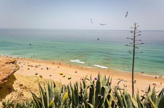 Ein beliebter Familienstrand westlich von Albufeira.