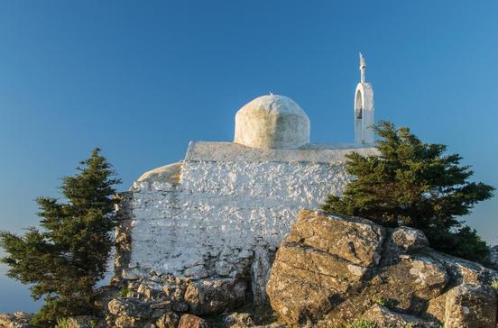 Zía ist Ausgangsort für eine Besteigung des 843 m hohen Díkeos, des höchsten Bergs der Insel. Je nach Kondition benötigen Wanderer dafür hin und zurück etwa drei bis fünf Stunden. Der Fußweg beginnt an dem kleinen, gepflasterten Platz im oberen Dorfteil, auf dem meist einige Autos geparkt sind. Von hier aus führen Stufen bergan, die auf einen Feldweg münden. Weitere Stufen führen dann auf eine unbefestigte Straße, der man rechts hinauf folgt. An der nächsten Weggabelung, an der eine Glocke im Baum hängt, die zur Kapelle Isódia tis Theotókou gehört, hält man sich rechts. Nach einigen Minuten zweigt ein Weg steil nach links oben ab, ein Wegweiser mit weißem Kreuz auf rotem Untergrund markiert ihn. Von nun an ist auch der weitere Weg bis zum Gipfel durch rote Punkte gekennzeichnet. Kurz bevor Sie den höchsten Punkt des Díkeos erreichen, kündet die Kapelle Metamórfosis tou Christoú davon, dass hier oben seit dem späten 11.Jh. ein Kloster stand. Für die Wanderung auf den Gipfel des Díkeos-Bergs sind rutschfeste Schuhe, eine Kopfbedeckung und eine Wasserflasche unerlässlich. Sie sollten die Tour nach Möglichkeit am frühen Morgen beginnen, um in der Mittagshitze nur abwärts gehen zu müssen.