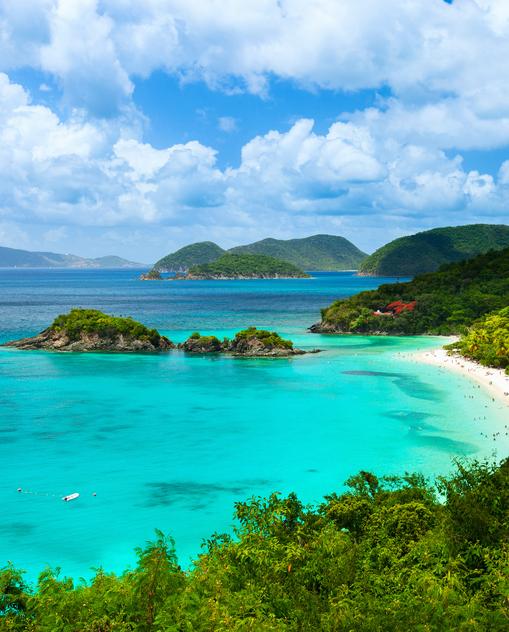 Die östlichste der US Virgin Islands ging in den 1950er-Jahren zur Hälfte in den Besitz der Rockefellers über. Die Magnatenfamilie spendete den Großteil für den Virgin Islands National Park, der zwei Drittel der 50 km² großen Insel bedeckt. Mehrmals die Woche kannst du dich hier von einem Parkranger auf dem Reef Bay Hike führen lassen und dabei die Vegetationszonen kennenlernen, eine Zuckermühle und präkolumbische Felsbilder besichtigen. Vom höchsten Berg auf St. John, dem Bordeaux Mountain (389 m) hast du einen tollen Blick. Eine Routenkarte gibt’s im Visitors’ Centre am Hafen in der kleinen Hauptstadt Cruz Bay, außerdem Läden (Wharfside Village und Mongoose Junction) und gute Restaurants wie das Lime Inn. Die köstliche conch chowder (Muschelsuppe) in Miss Lucy’s Restaurant lohnt den Weg nach Salt Pond. Die schönsten Strände sind Trunk und Cinnamon Bay.