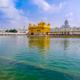Sein Standort ist symbolisch: in einem künstlichen, rechteckigen See, dem "Nektar der Unsterblichkeit", nach dem die Stadt ihren Namen bekam. Ein Brückensteg führt zum Tempel (Hari Mandir) hinüber. Am Ufer steht der Akhal Takht, der Sitz der religiösen Leitung der Sikhs. Jeden Morgen wird das heilige Buch Granth Sahib zeremoniell aus dem Akhal Takhat in den Goldenen Tempel getragen, wo Stunde um Stunde laut daraus gelesen wird. Meditative Musik ertönt, bunt gekleidete Pilgerbestaunen das Heiligtum. Keine Götterbilder, aber Malereien, kostbare Teppiche und Vorhänge, Einlegearbeiten an Wänden und Pfeilern umgeben das Podest des Granth Sahibs. Willkommen sind auch Andersgläubige. Als Symbol der Offenheit hat der 1589 erbaute, nach muslimischer Zerstörung um 1800 wiedererbaute Tempel Türen nach allen Himmelsrichtungen. Tempelbesucher geben ihre Schuhe und Strümpfe in Verwahrung, ebenso Zigaretten, größere Taschen und Rucksäcke. Du musst den Kopf bedecken (Mützen werden ausgeliehen) und Füße und Hände in fließendem Wasser reinigen.