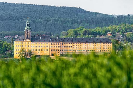 Hoch auf einem Felsen über dem Saaletal thront das bescheidene Sommerschloss des kleinen Fürstengeschlechts Reuß ältere Linie. Die Innenräume zeigen höfische Wohnkultur vom 17.bis Anfang des 20.Jh. Die größte Kostbarkeit befindet sich in der Schlosskapelle: die Orgel von Gottfried Silbermann, Sachsens berühmtestem Orgelbaumeister, die in den Sommermonaten zu Konzerten erklingt.