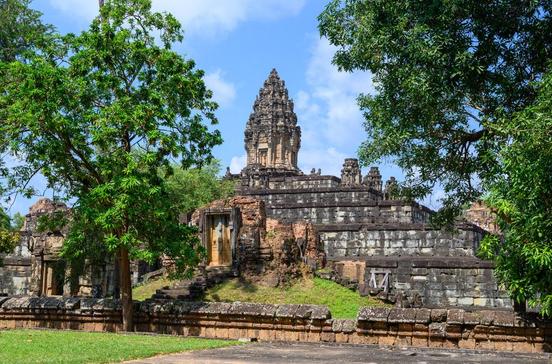 Die drei Tempel – Bakong, Preah Ko, Lolei – sind die Überreste der ersten größeren Hauptstadt des Khmer-Imperiums, die von Jayavarman II. im 9.Jh. gegründet worden war: Hariharalaya, benannt nach Hari Hara, einer hinduistischen Gottheit. Innerhalb von 70 Jahren entstanden hier die Vorläufer der berühmten Angkor-Bauten, erstmals aus Sandstein statt Holz und Ziegeln. Am beeindruckendsten ist der fünfstufige Tempel Bakong (881 erbaut) im Zentrum, der zu Ehren Shivas errichtet wurde, mit seinem Zentralturm im Angkor-Stil (das Independence-Monument in Phnom Penh ist ihm nachempfunden), der von weiteren acht Türmen bzw. deren Überresten umgeben ist. Nördlich erheben sich die sechs Prasat-Türme von Preah Ko, die von Nandi, dem Reitstier Shivas, Wächterfiguren und steinernen Löwen bewacht werden. Auffallend über vielen Portalen: Kala, ein mythologischer Dämon mit großem Maul und Glubschaugen.
