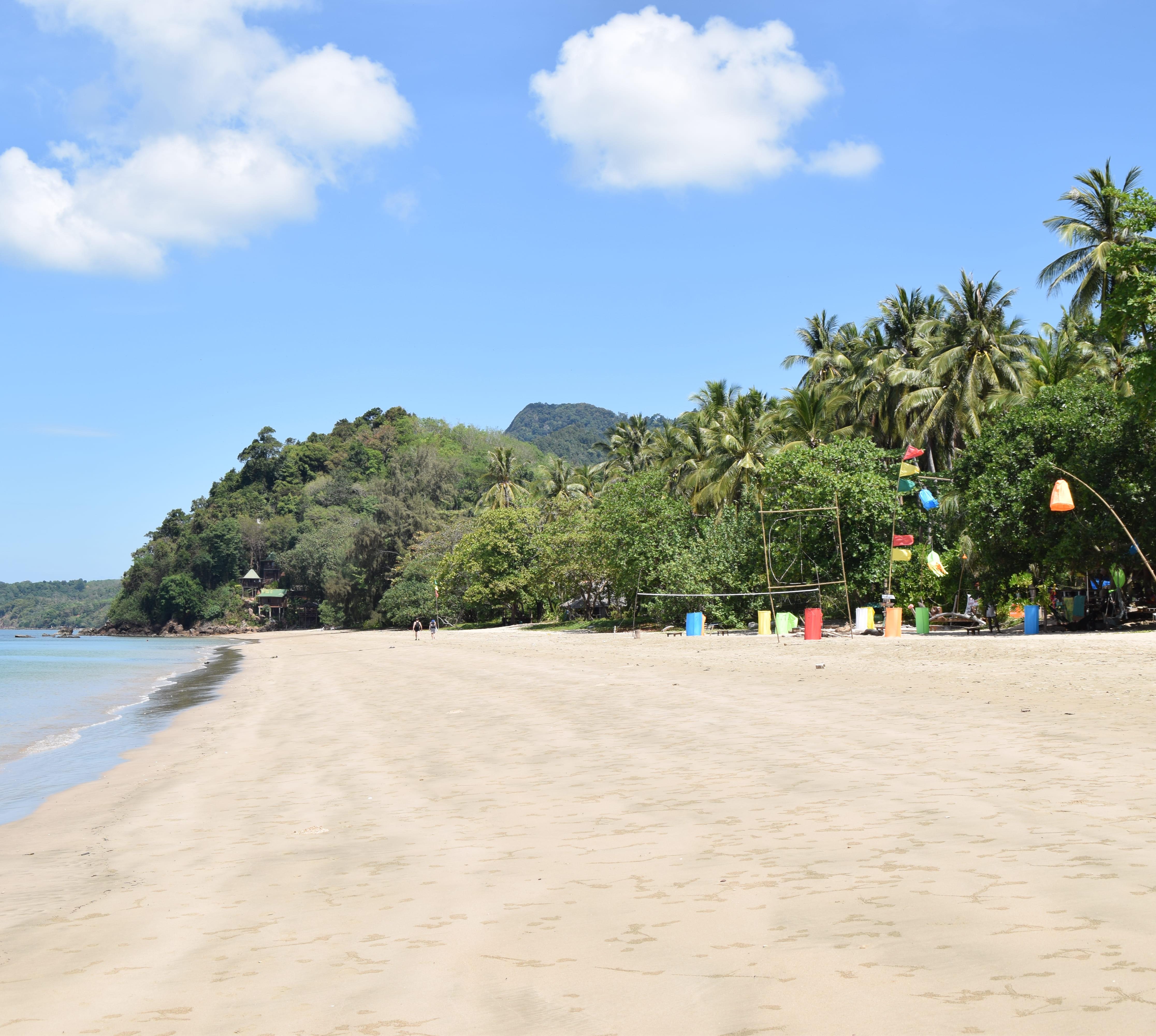 Am ca. 3 km langen und recht breiten Strand haben sich viele Resorts angesiedelt. Vom südlichen Teil gelangt man durch Wald und Gummibaumplantagen ins Dorf.