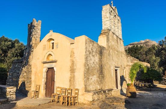 Dieses Gotteshaus liegt inmitten eines Olivenhains und ist eine der ganz alten Kirchen Griechenlands: Ihr Bau wird auf das 8.Jh. datiert. Wenn die Türen verschlossen sind, läutet man die Glocken, damit die Schlüsselverwahrerin kommt und einen hereinlässt.