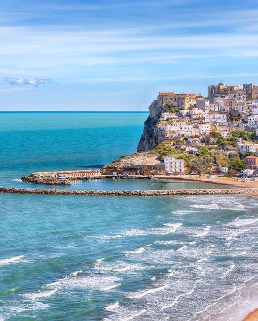 Zwei Meere umspülen Apulien, das Ionische im Westen und die Adria im Osten, fast überall blau und sauber. An der Adriaküste liegt die Regionalhauptstadt Bari, mit 325 000 Einwohnern eine süditalienische Großstadt mit zersiedelten Randbezirken und sozialen Problemen, aber auch einem pulsierenden Zentrum aus Altstadt und Hafen. Hier stößt du im Gassengewirr auf zwei mittelalterliche Wahrzeichen Apuliens, die eindrucksvolle romanische Kathedrale und das Kastell aus der Zeit der Staufer und Normannen. Auch der schönste Fleck an der Adria gehört zu Apulien – der hohe, bewaldete Gargano, Sporn des italienischen Stiefels, mit Strandbuchten vor weißen Kalkwänden und hübschen Klippenstädtchen wie Peschici und Vieste, wo im Sommer die Post abgeht.